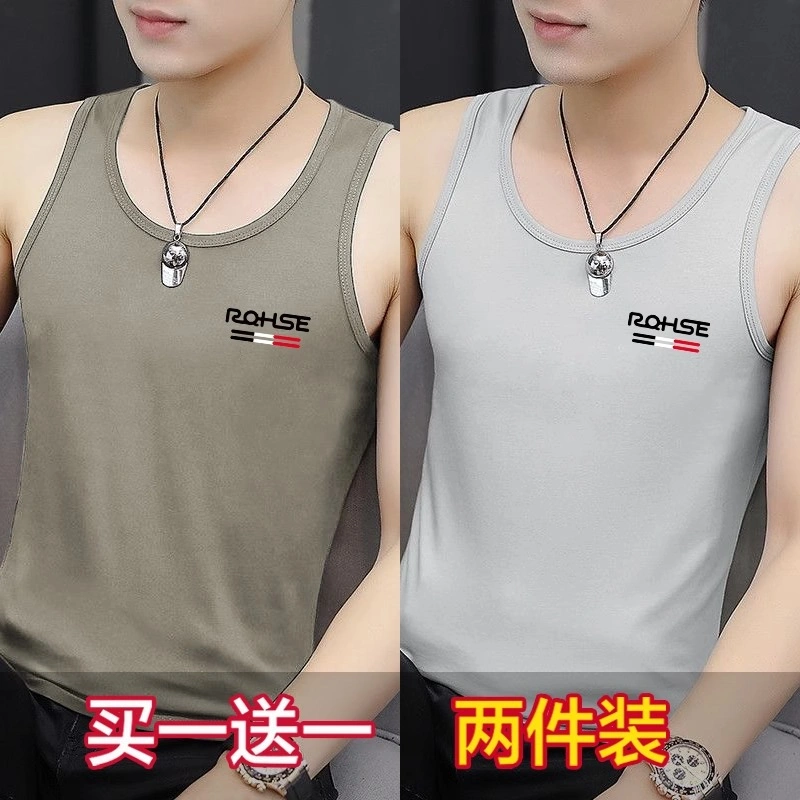 Buy One Get One Free Men's Sleeveless T-Shirt Summer Stylish Printed Plus Size Tank Top Trendy Slimming Base Layer Men's Clothing