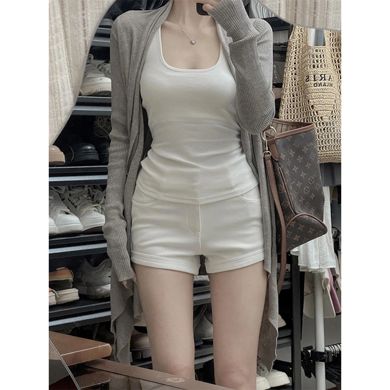 White American-Style Spicy Girl Denim Shorts for Women, Summer Thin High-Waisted Slimming Design, Stretchy A-Line Hip-Hugging Hot Pants