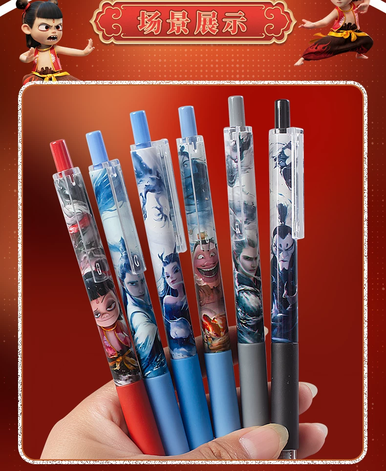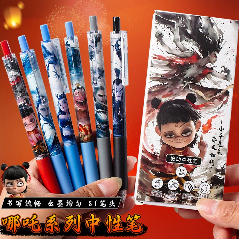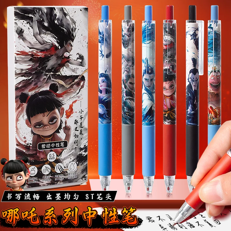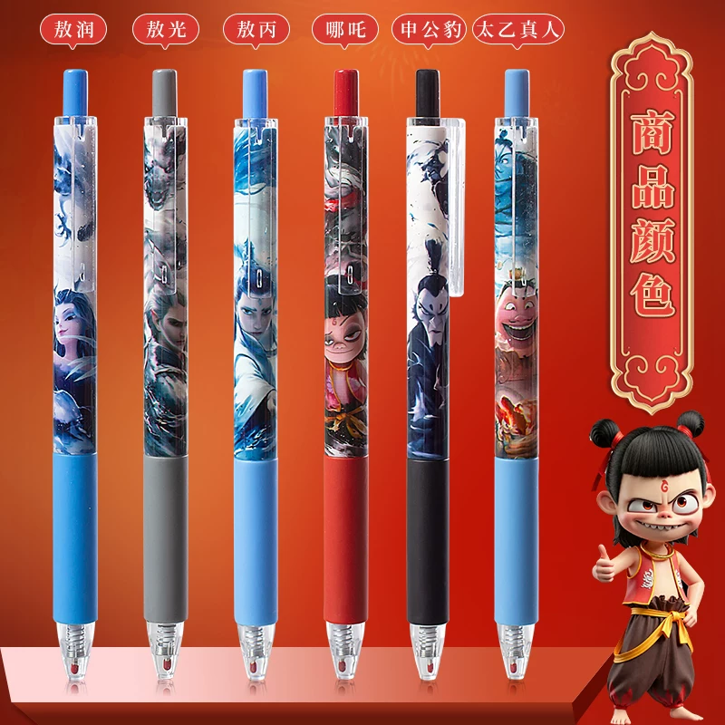 Nezha Press-Type Quick-Drying Gel Pen for Elementary School Students, High-Quality Student Pen, 0.5mm, for Exams and Practice Questions, Quick-Drying and Smooth Writing