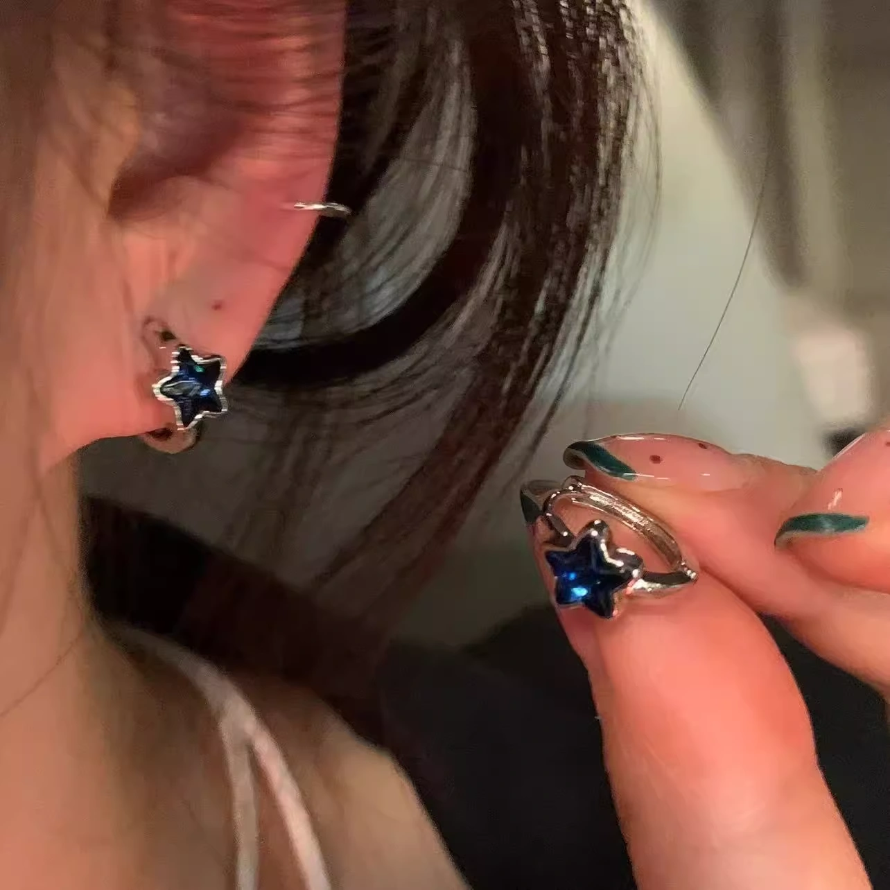 Blue Star Earrings for Women Cross-Border New Style Blue Star Earrings for Women Stylish Earrings for Women