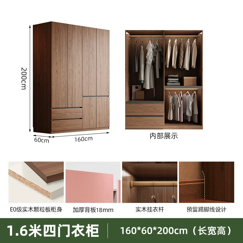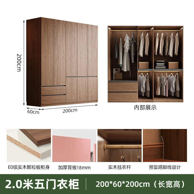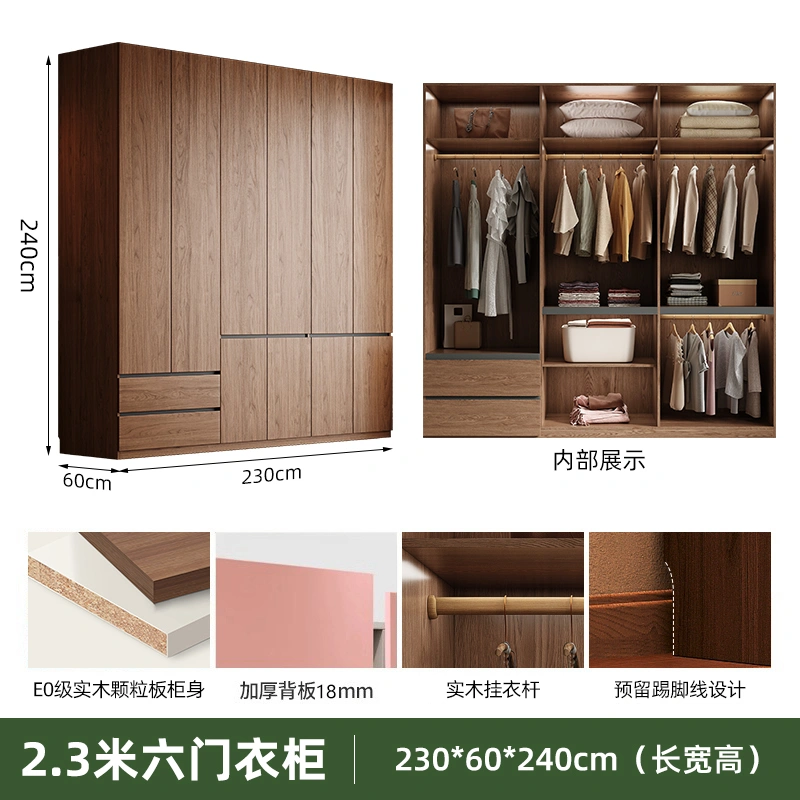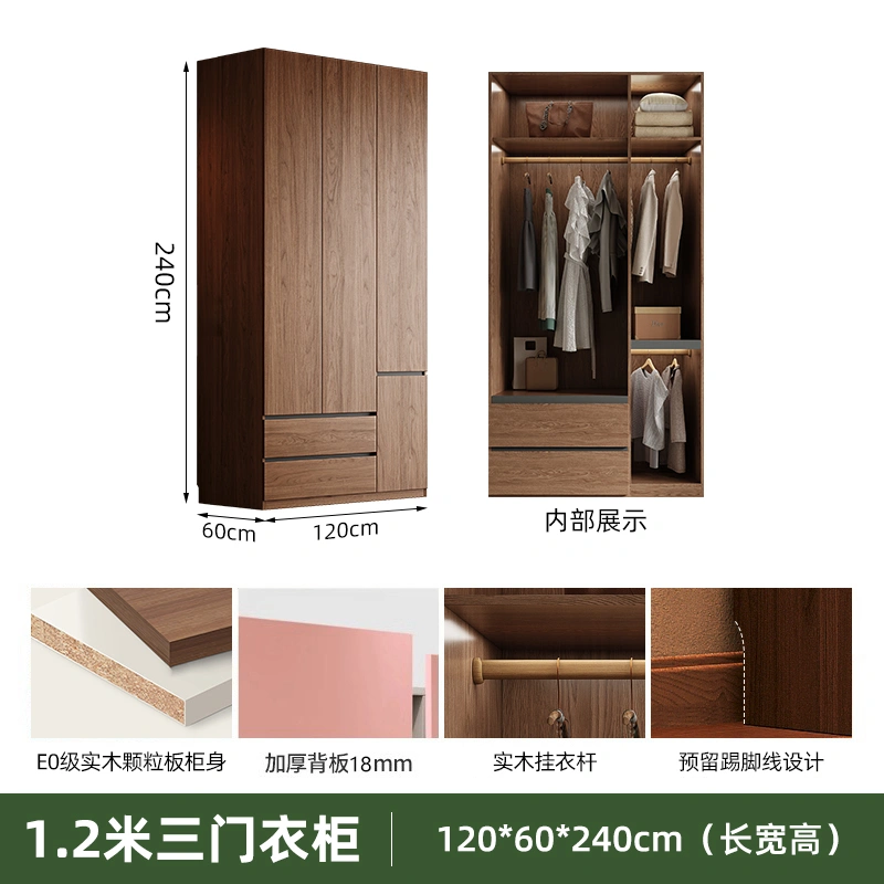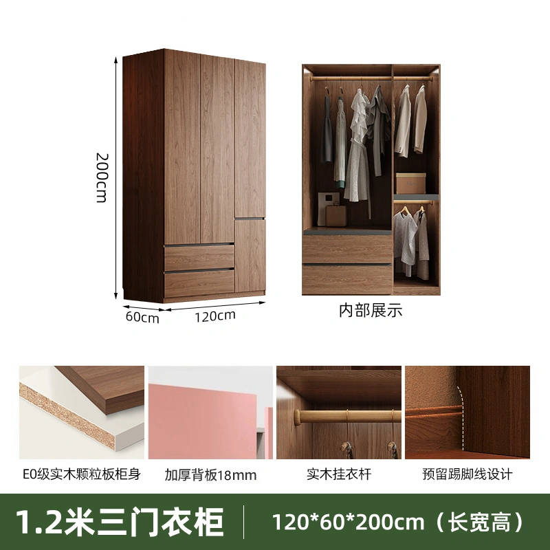 Solid Wood Wardrobe Antique Particle Board Modern Minimalist Sectional Cabinet Handler-Free Economical Combination Wardrobe