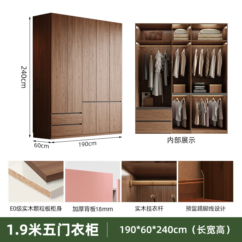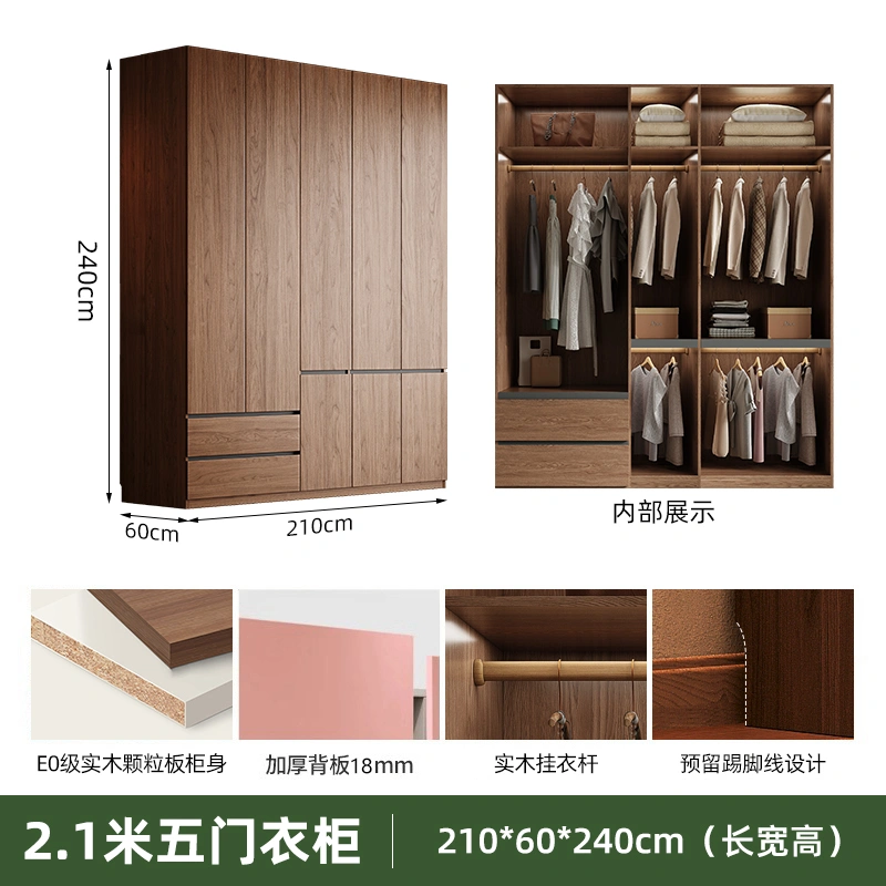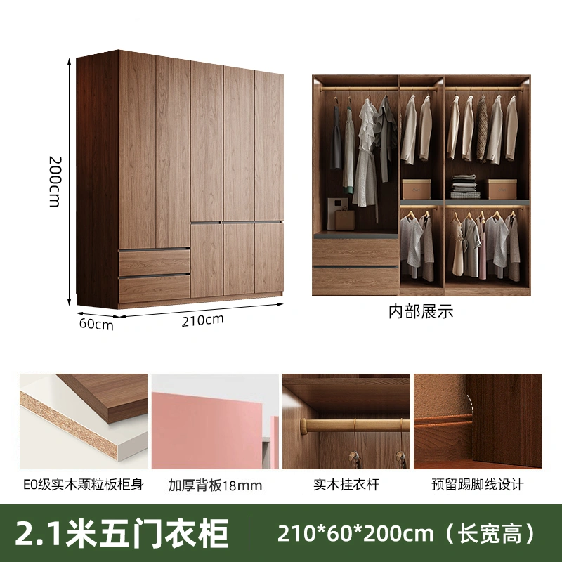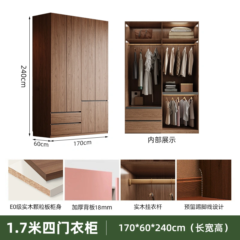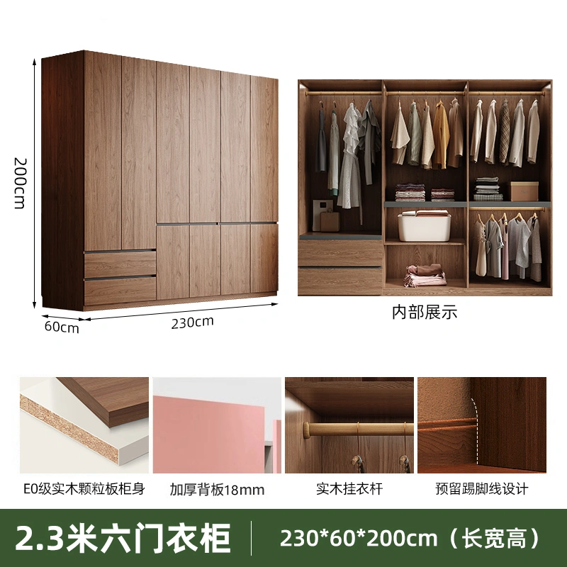 Solid Wood Wardrobe Antique Particle Board Modern Minimalist Sectional Cabinet Handler-Free Economical Combination Wardrobe