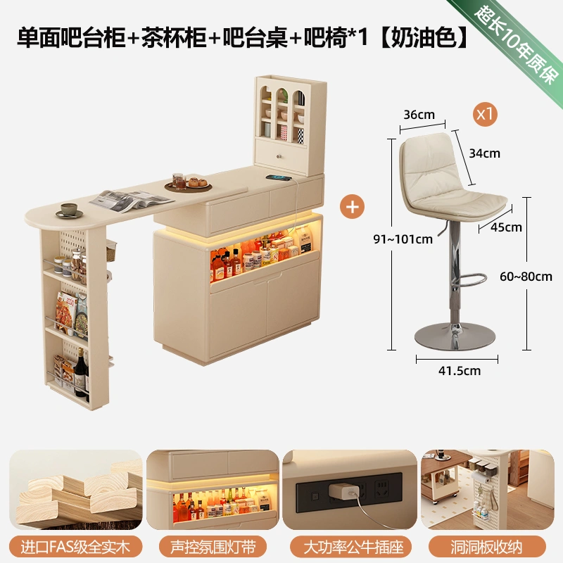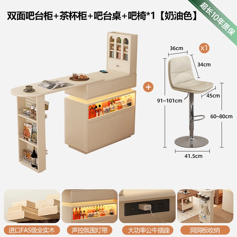 Retractable Coffee Bar Integrated Sideboard Solid Wood Small Apartment Home Living Room Partition Storage Rotating Island Table