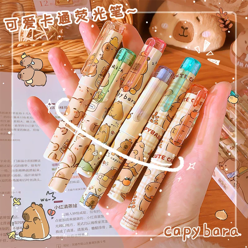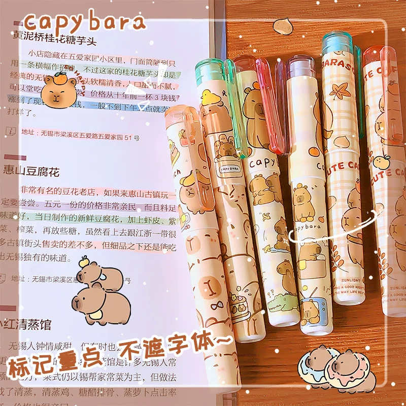 Capybara Cartoon Highlighter Pen, High-Value Cute Capybara Colorful Doodle Pen, Student-Use Highlight Marker Pen
