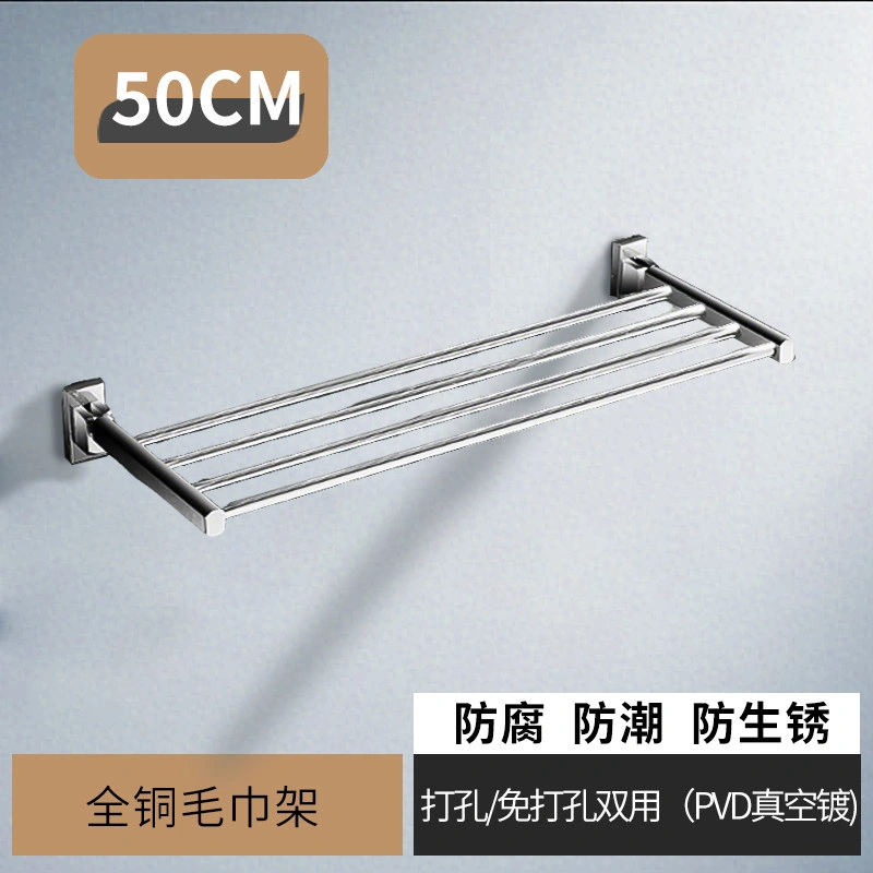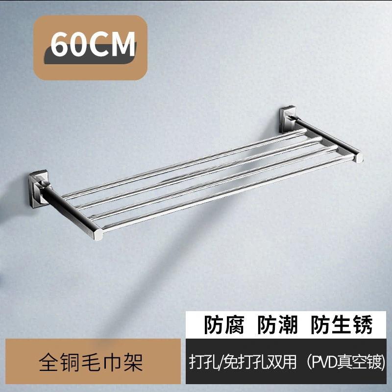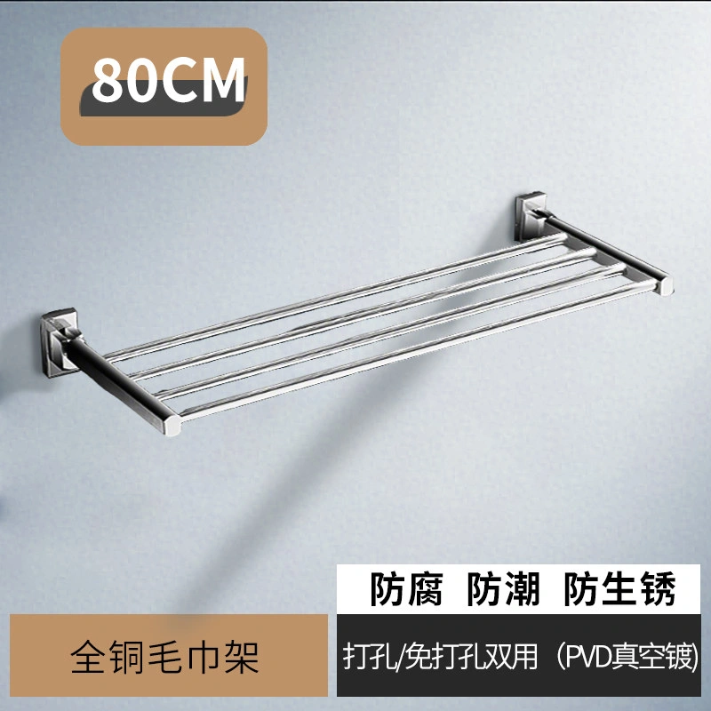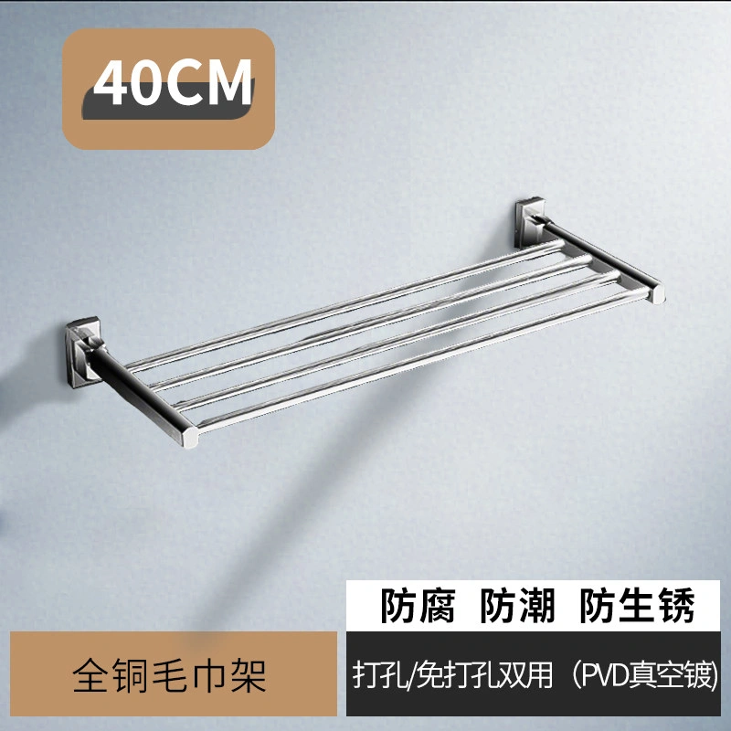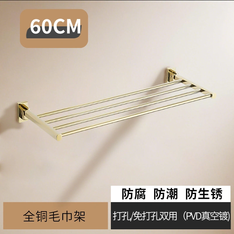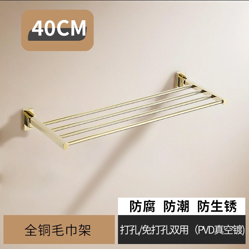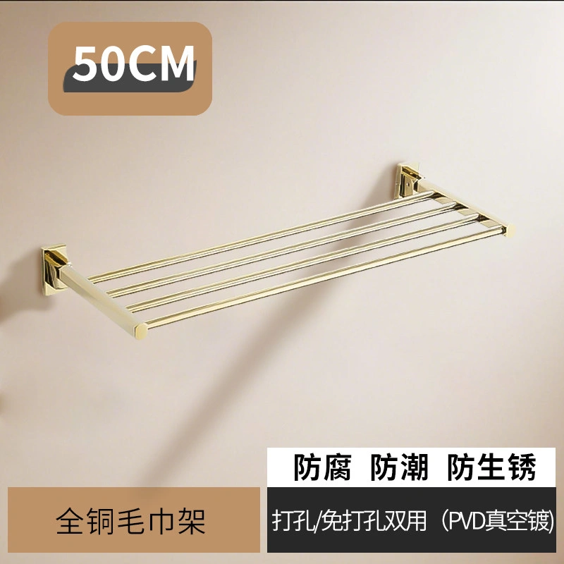 French-Style All-Copper Towel Rack, No-Drill Bathroom Shelf, Single-Layer Foldable Towel Rack, Gold Bathroom Accessories