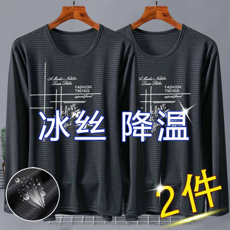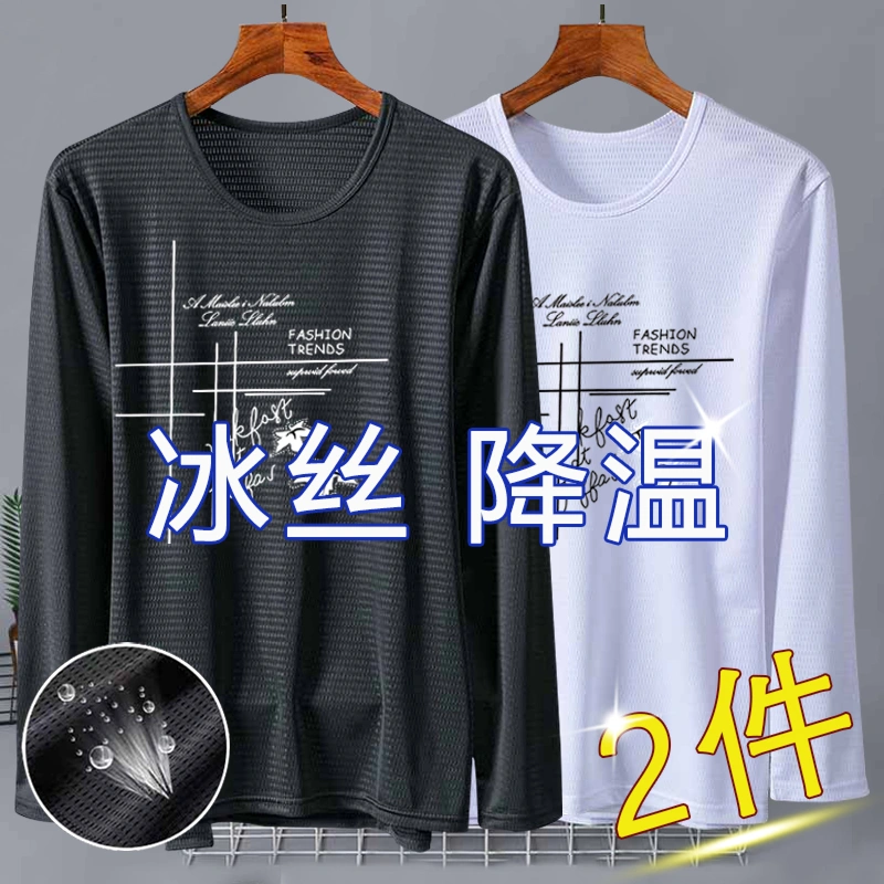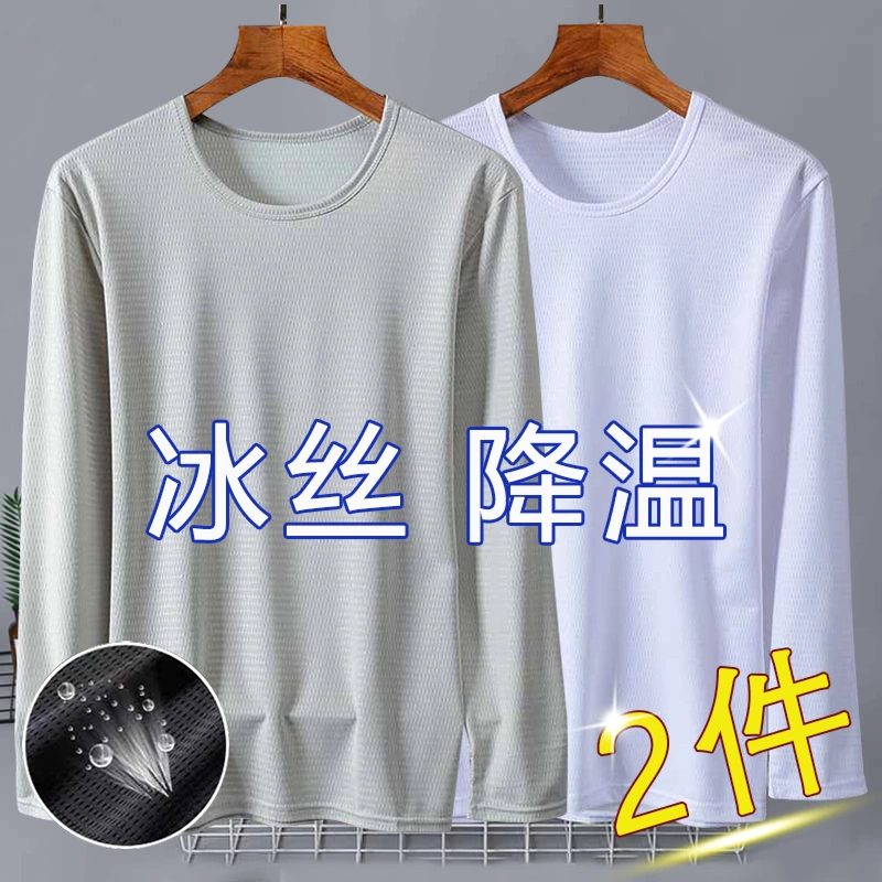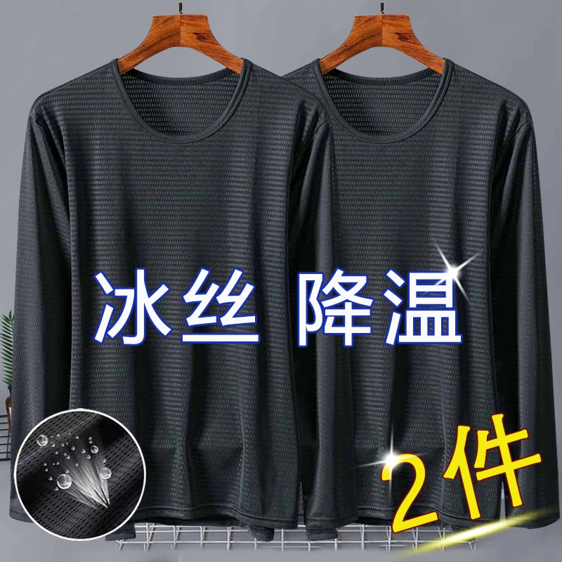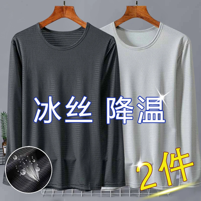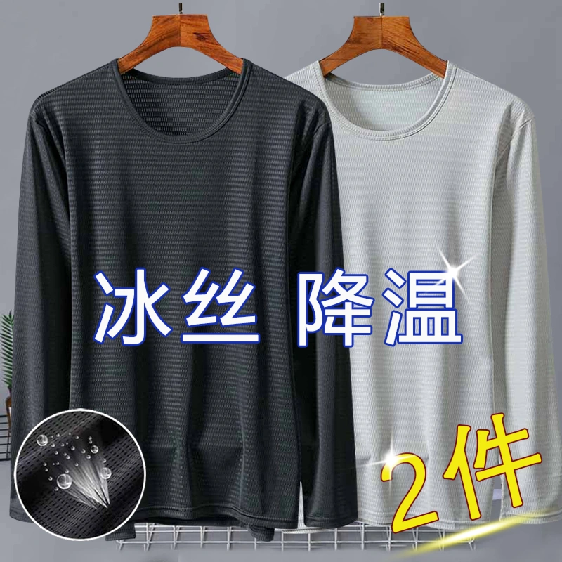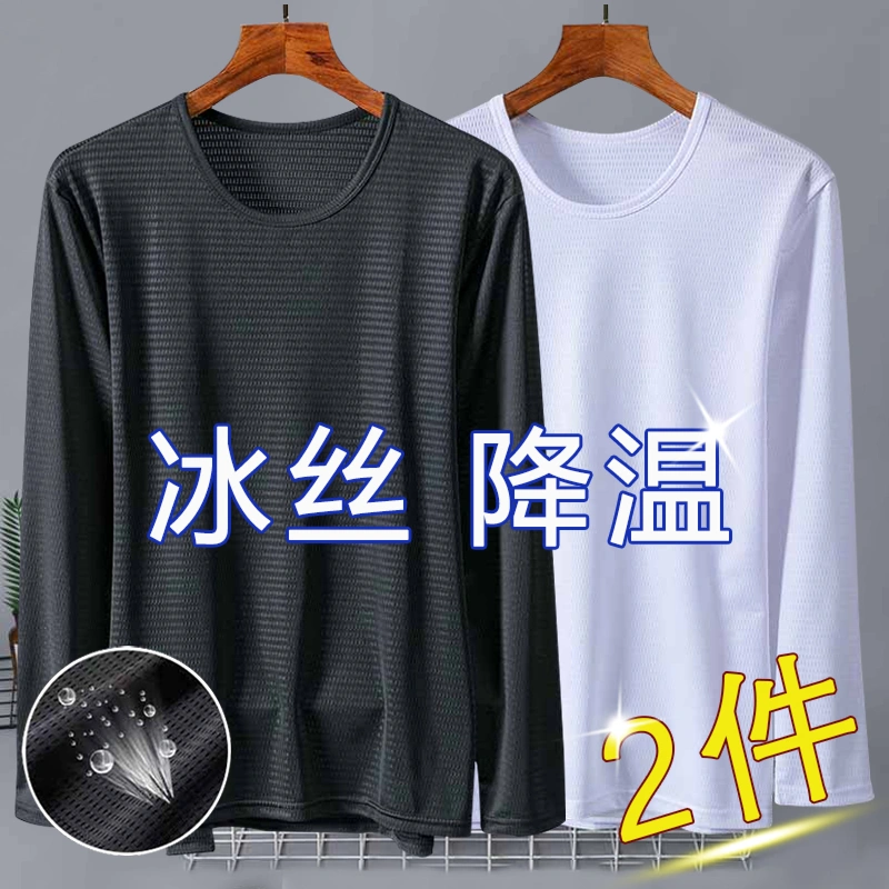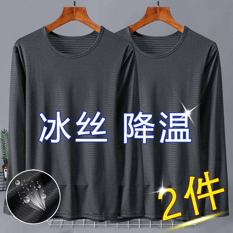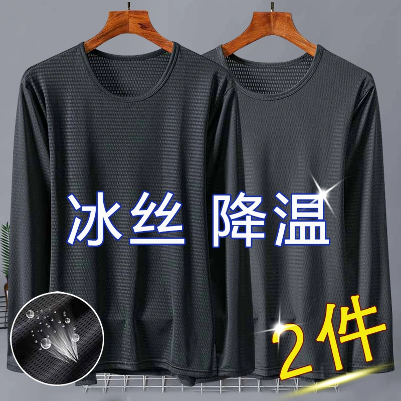 Large Size Ice Silk Long-Sleeved T-Shirt for Men, Summer Thin Quick-Drying Mesh Breathable Outdoor Sun Protection Air-Conditioned Loose Base Shirt
