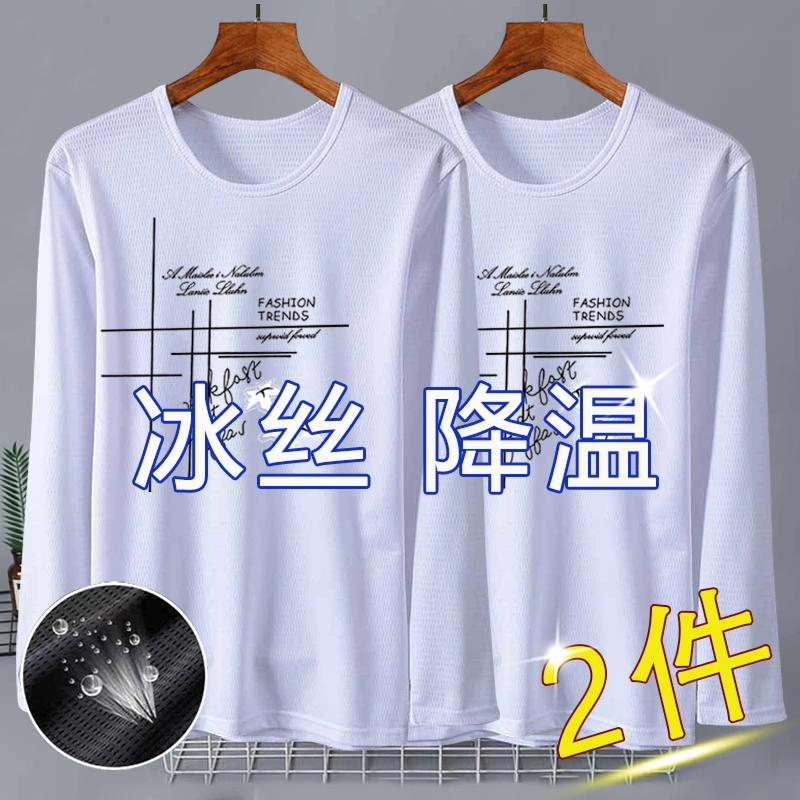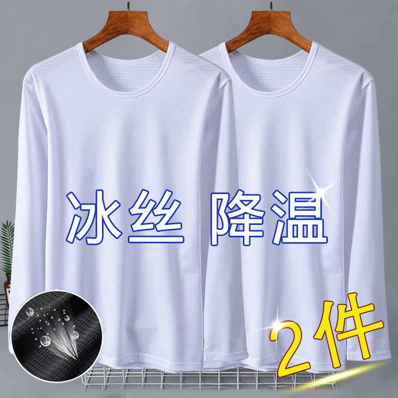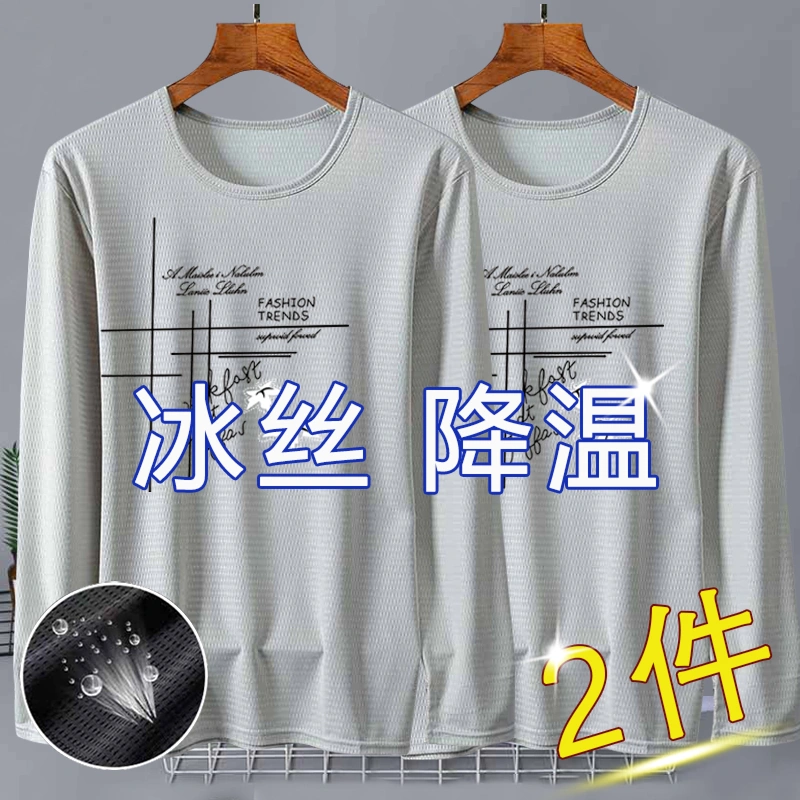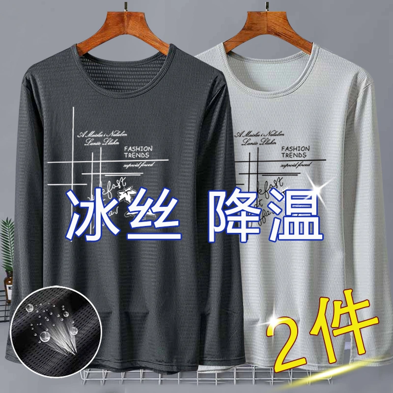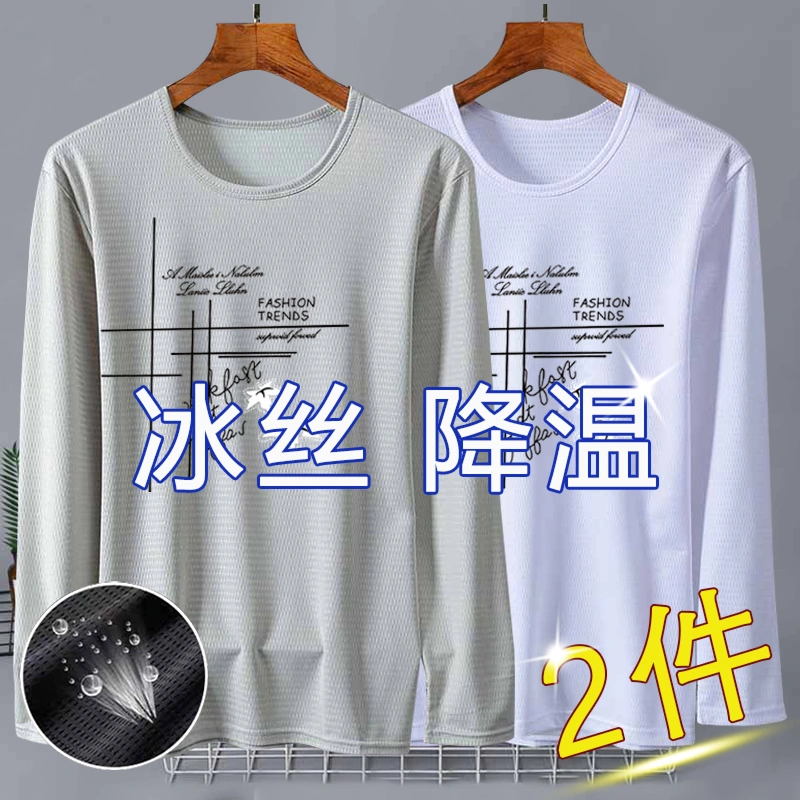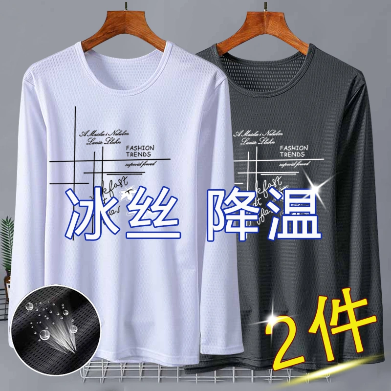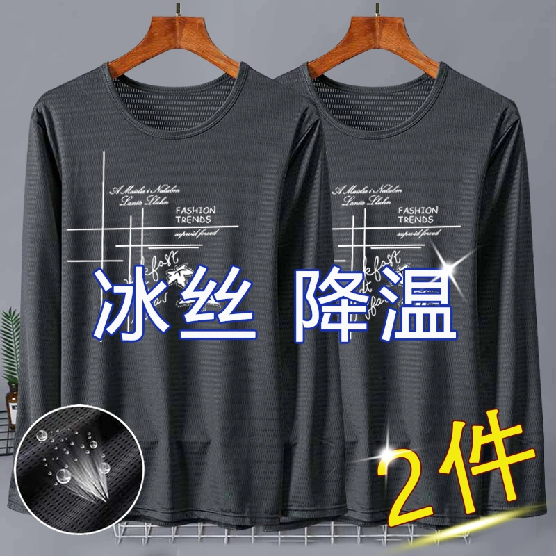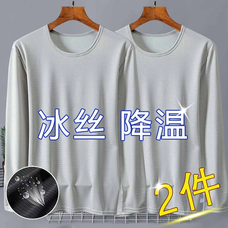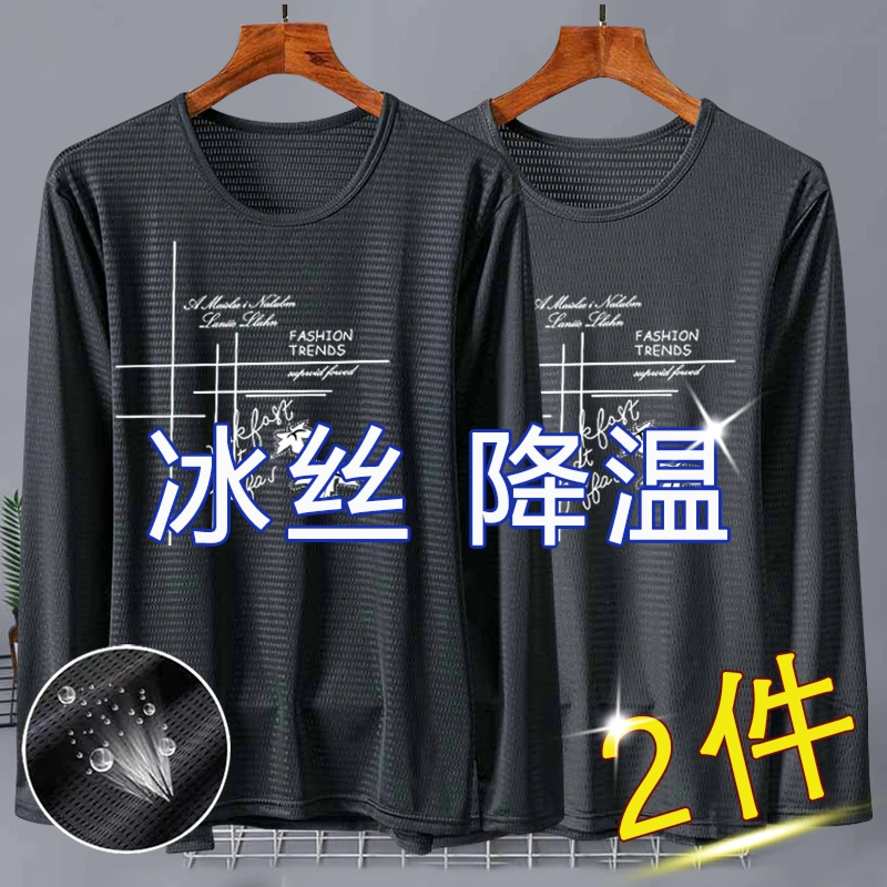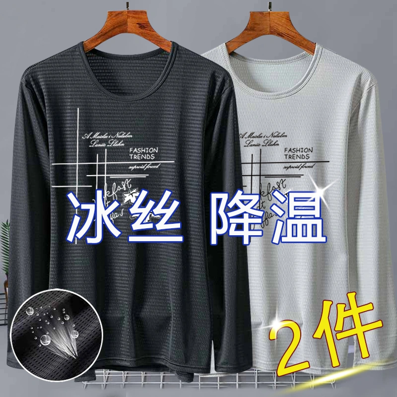 Large Size Ice Silk Long-Sleeved T-Shirt for Men, Summer Thin Quick-Drying Mesh Breathable Outdoor Sun Protection Air-Conditioned Loose Base Shirt