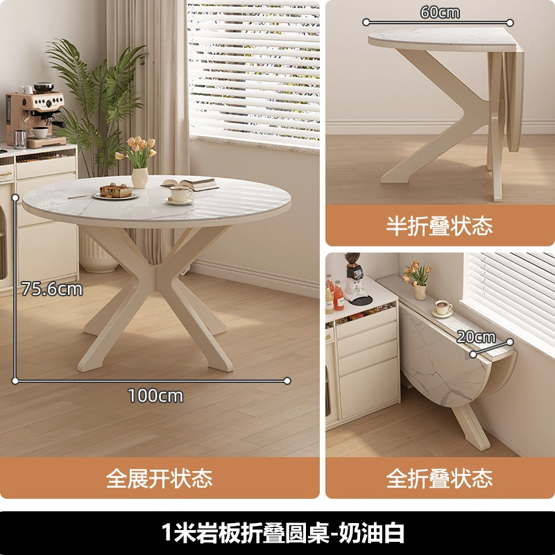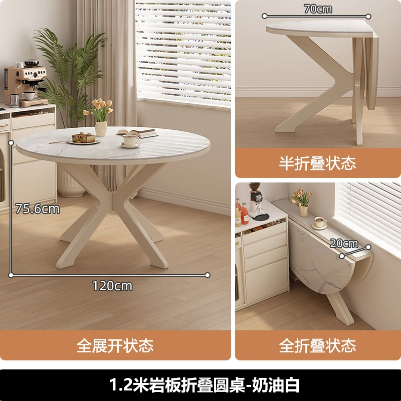 French-Style Vintage Wall-Mounted Semi-Circular Table, Wabi-Sabi Style, Creative White Rock Slab Dining Table, Small Apartment Folding Butterfly Table, Solid Wood