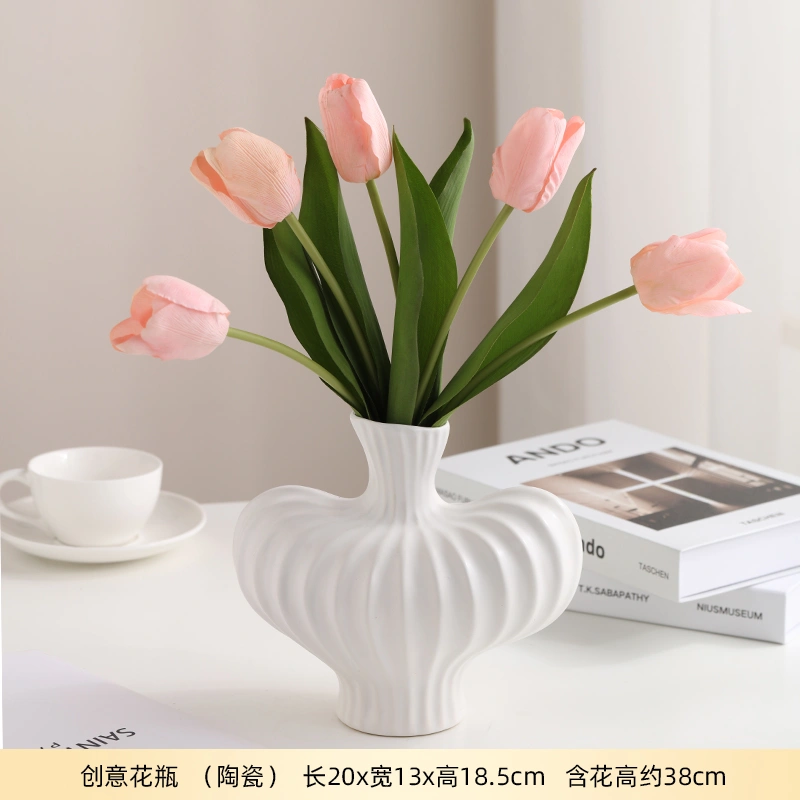Jia Gan Scandinavian Retro Ji Ji Vase Simulation Flower Stylish Hit Style Special-Shaped Ceramic Art Ornament Flower Ornament