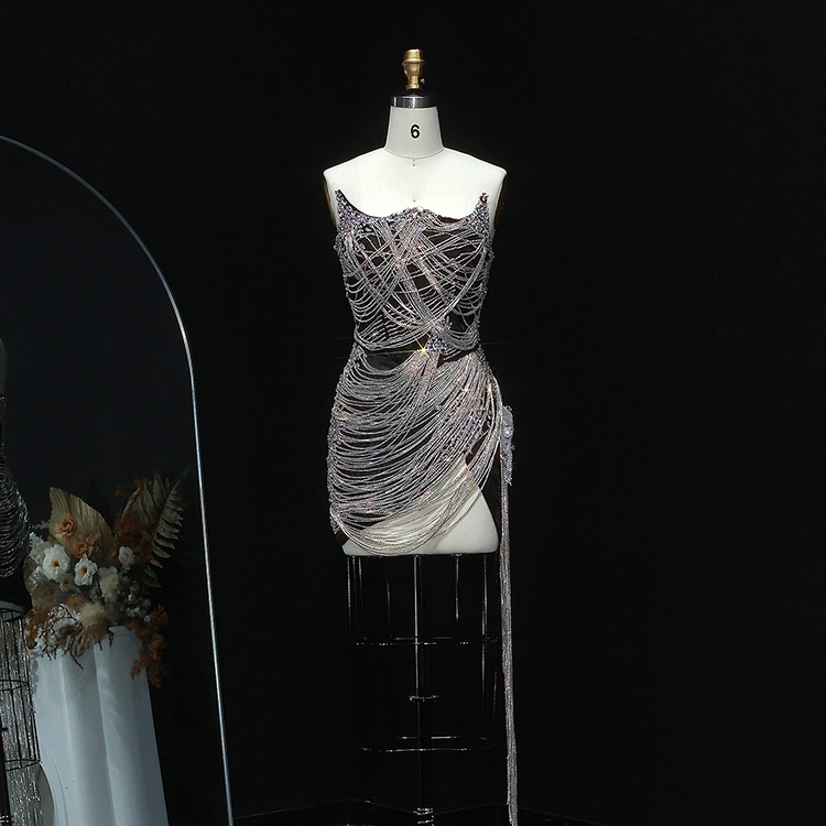 Sharon Said High-End Silver Short Sexy Tassel Tube Top Dress Banquet Prom Nightclub Dress Rm012