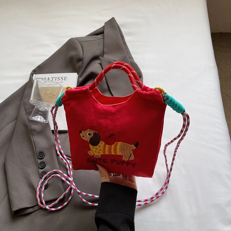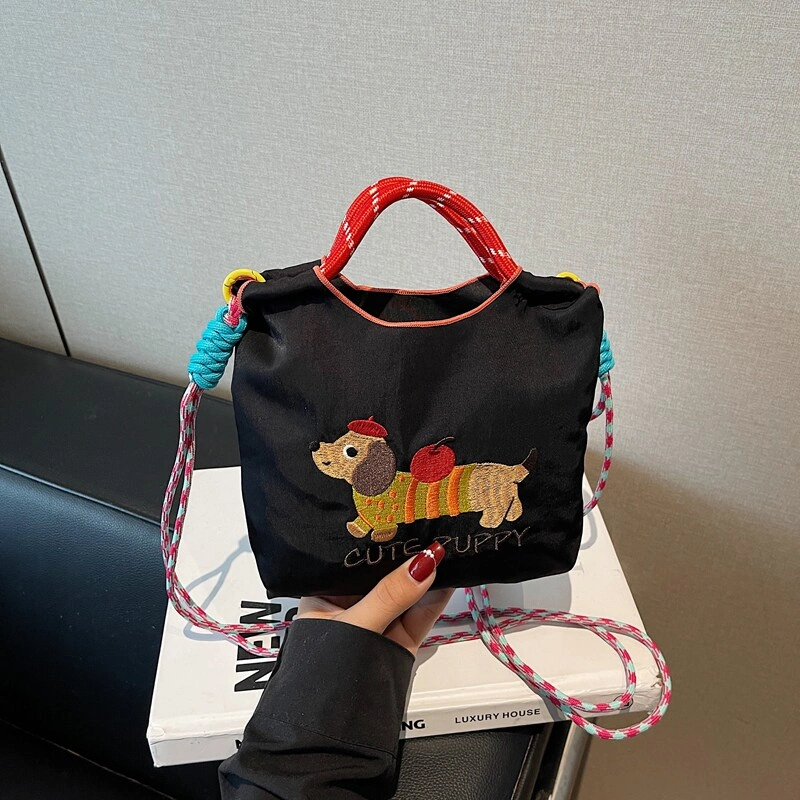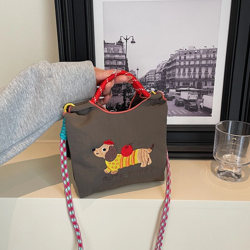 Japanese-Style Cute Embroidered Dachshund Bucket Bag for Women 2025 New Model Phone Bag Versatile Commuter Shoulder Crossbody Bag