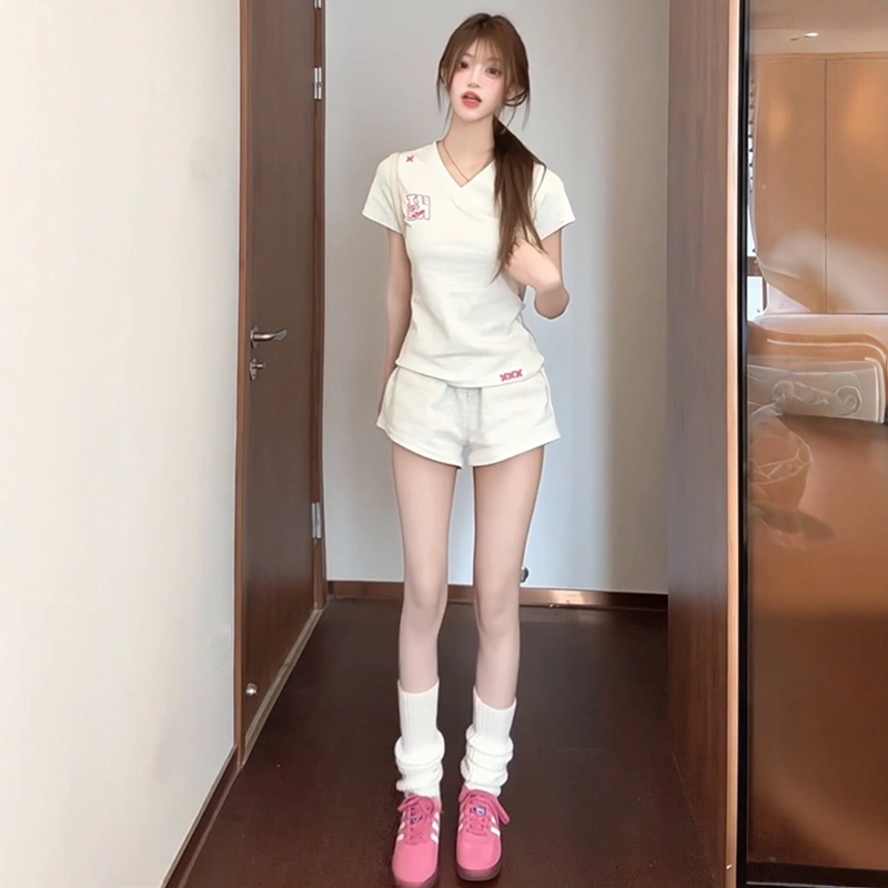 Korean Style Hot Girl Sports Suit for Women, Summer Student Slim Fit Fashionable Short-Sleeved Shorts Casual Two-Piece Set for Running