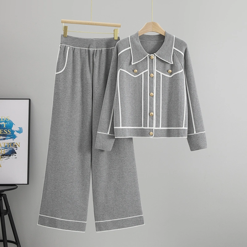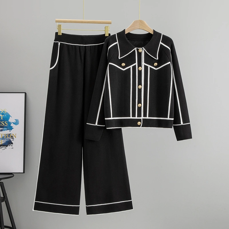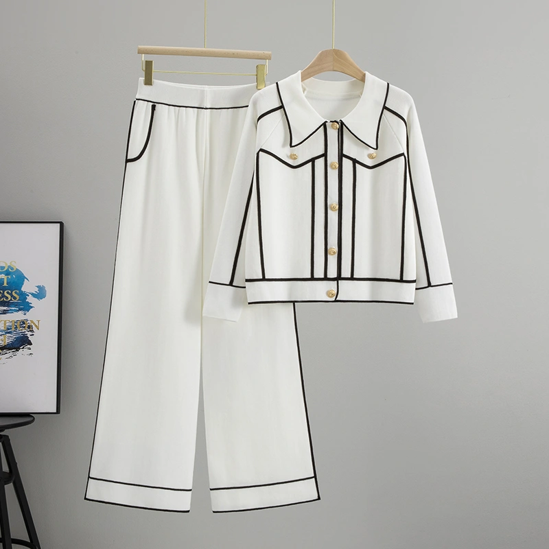 Tweed Style Suit for Women, Spring & Fall, Slimming Look, Age-Reducing, Fashionable, Elegant, Ice Silk Knitted Wide-Leg Pants, Two-Piece Set for Women