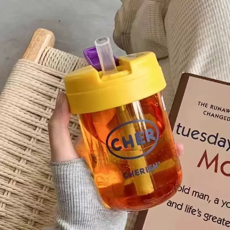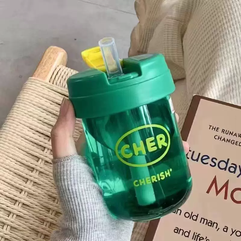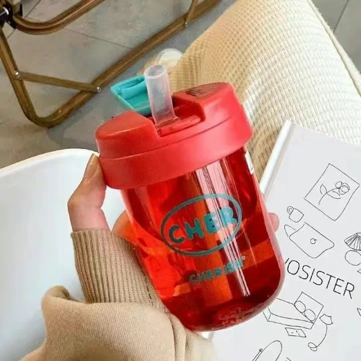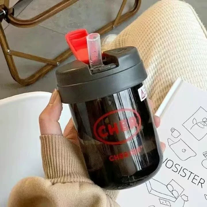 Summer ins High-Fashion Water Bottle for Girls with Lid, Super Popular Ton-Ton Cup, Cute and Creative Cup for Students, Heat-Resistant and Drop-Proof