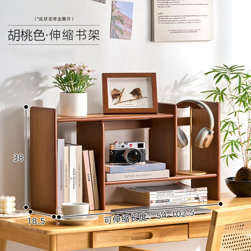 Desktop Solid Wood Bookshelf Desktop Retractable Storage Rack Work Station Small Shelf Home Student Dormitory Desk Storage Bookcase