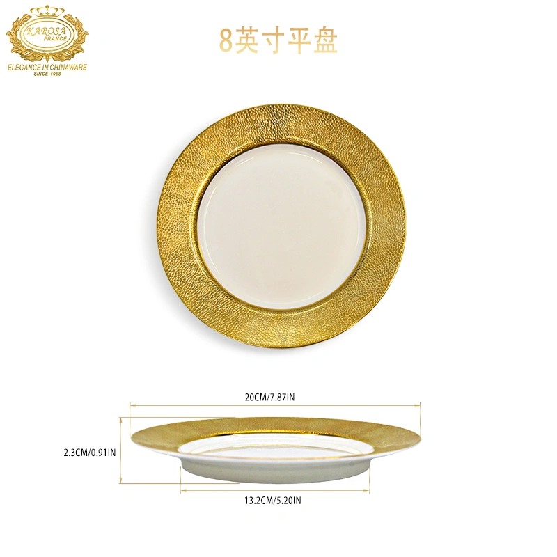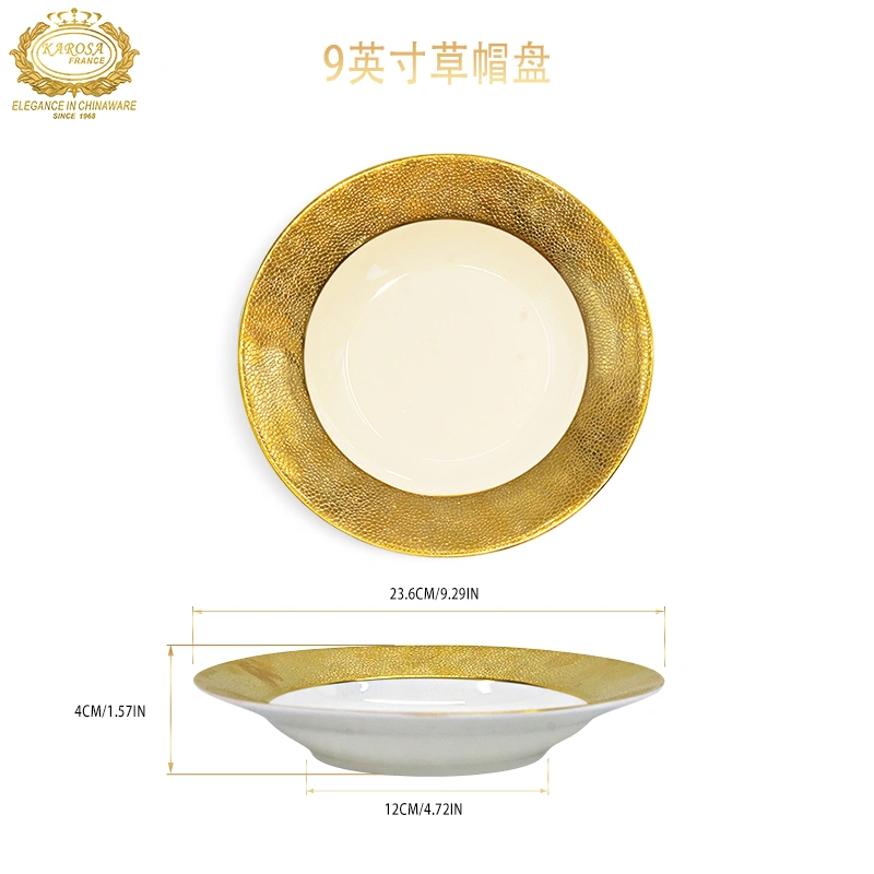Canosa Jinyao High-End Embossed Gold Dinner Plate Modern European-Style Western Food Rice Bowl Plate Hotel Club Tableware Set