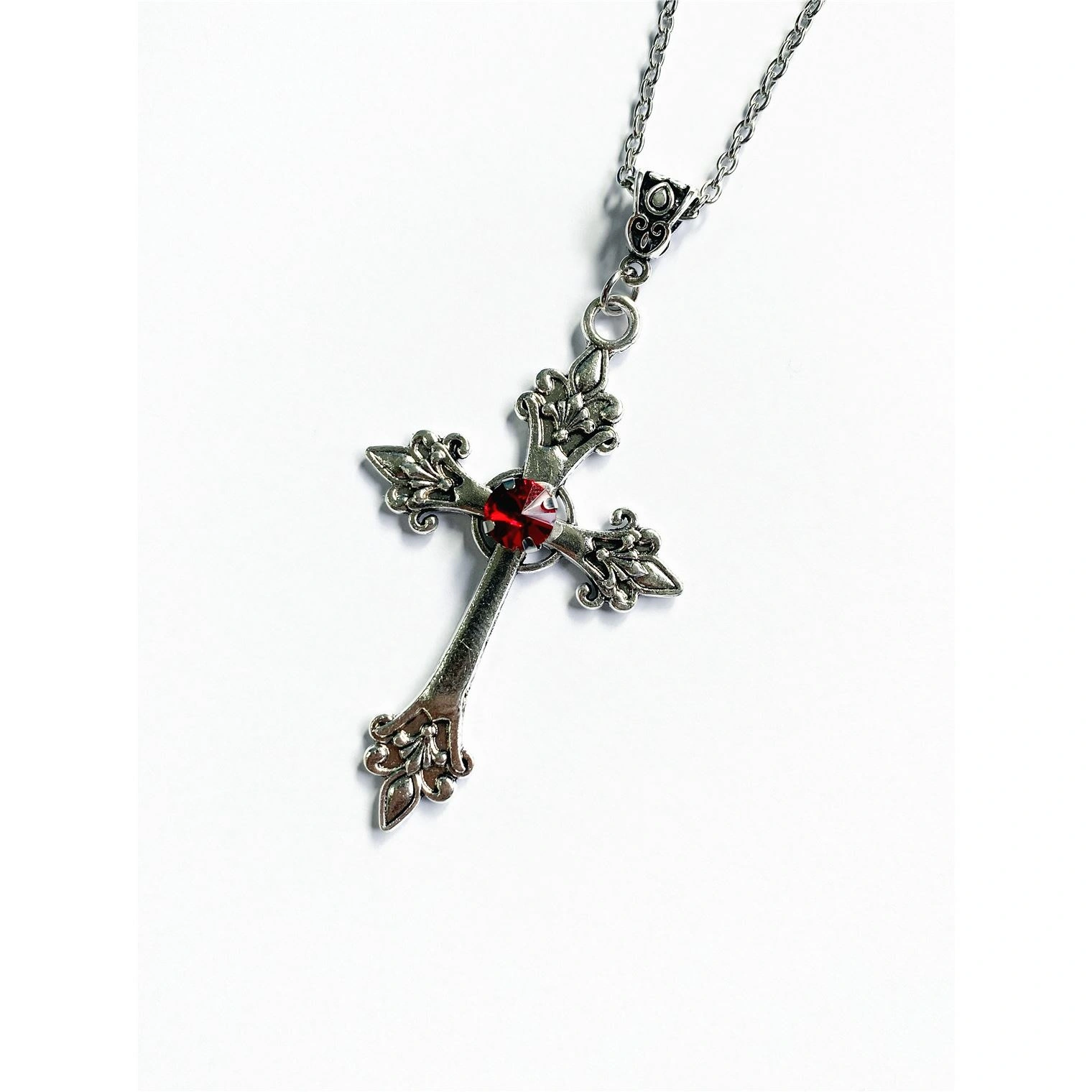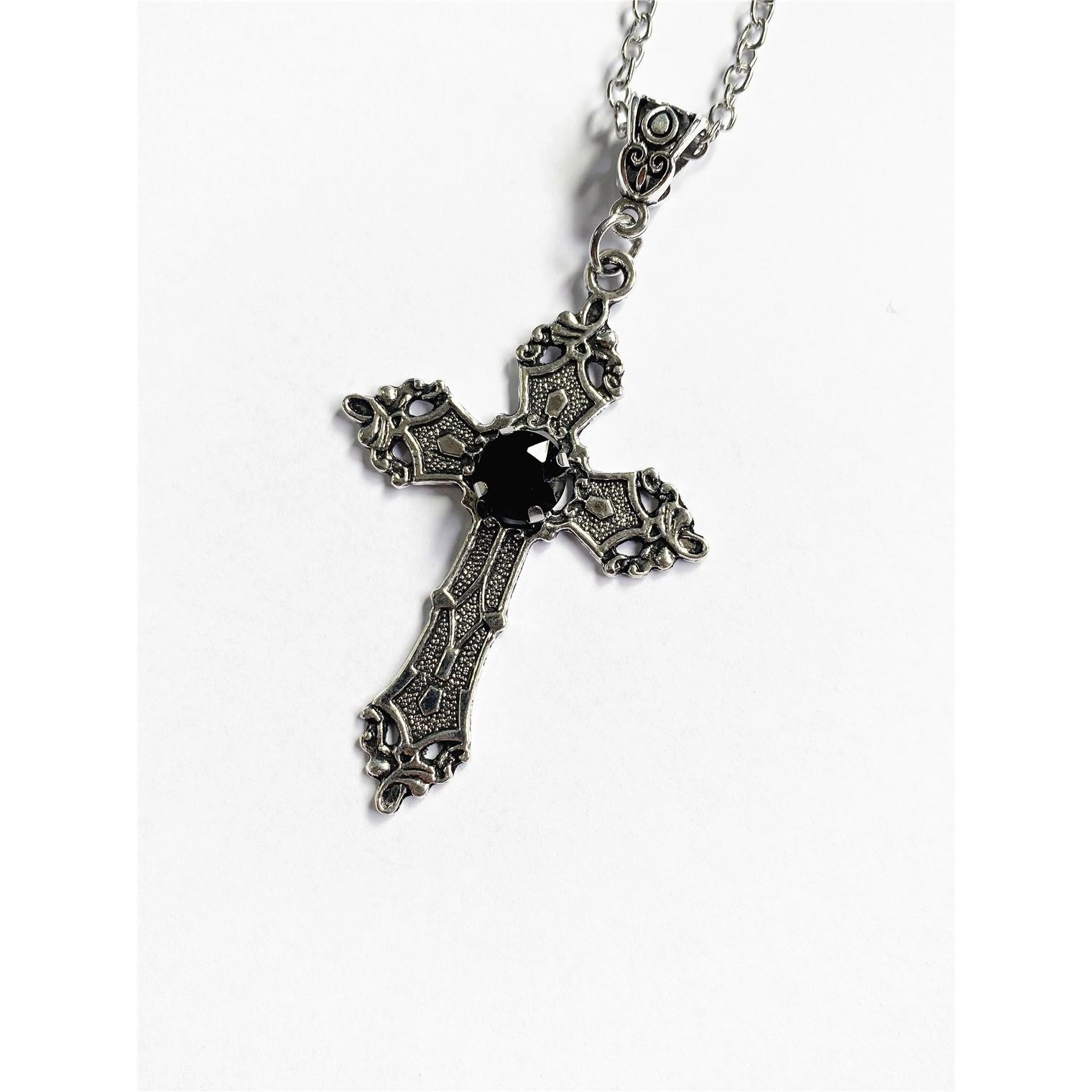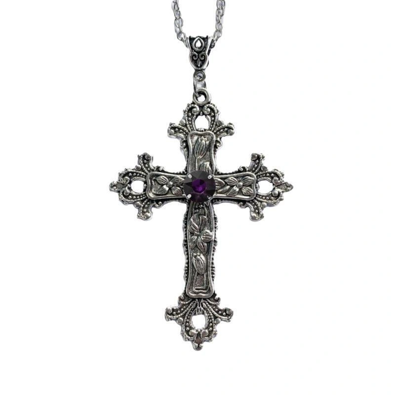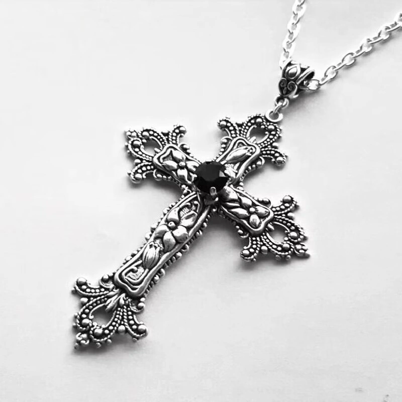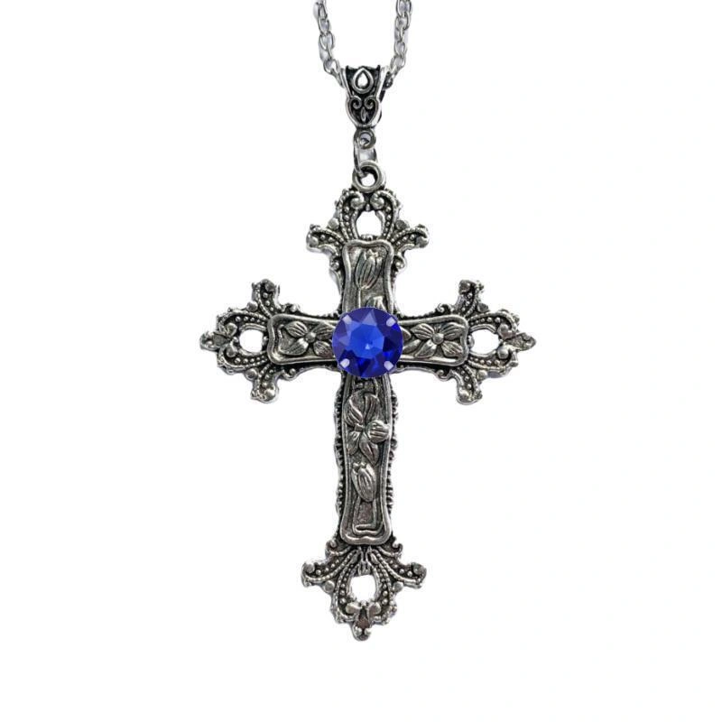 Cross Long Necklace for Women Cross-Border Floral Cross with Diamond-Studded Gothic Style Jewelry