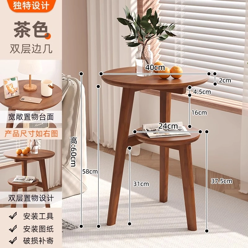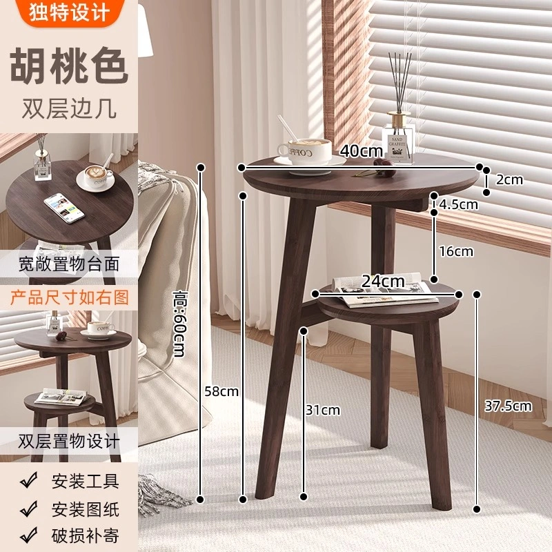 Solid Wood Small Table Small Apartment Coffee Table Home Living Room Sofa Side Table Balcony Small Round Table Bedroom Bedside Storage Table
