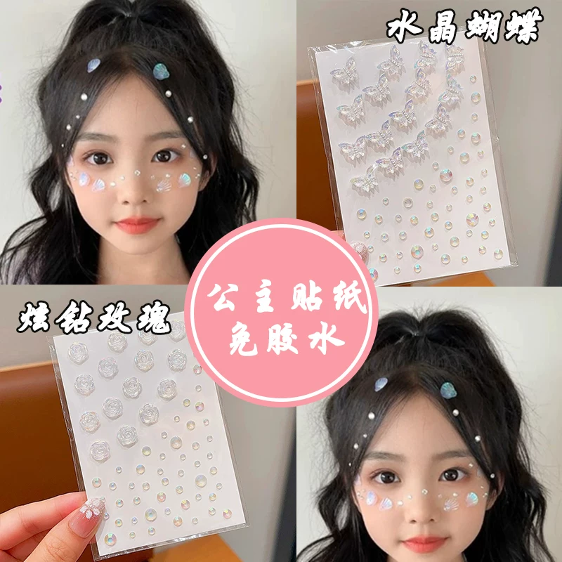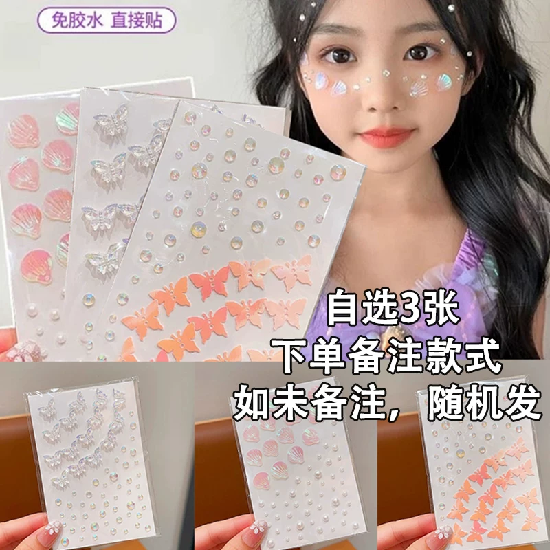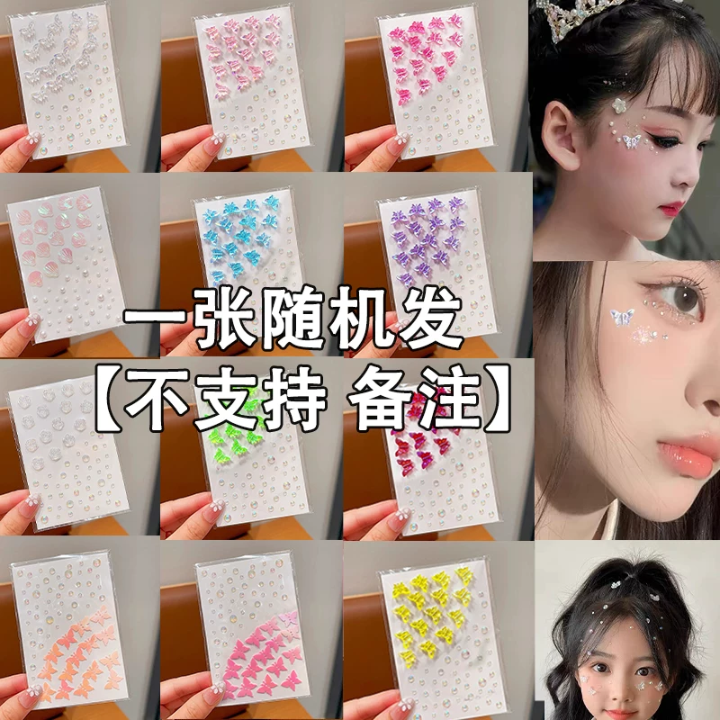 3D Butterfly Face Stickers, Face Stickers with Rhinestones, Children's Day Stage Makeup Face Accessories, Crushed Rhinestone Eye Makeup, Shiny Rhinestone Tear Drop Stickers