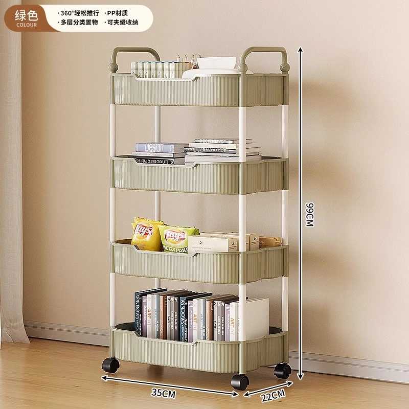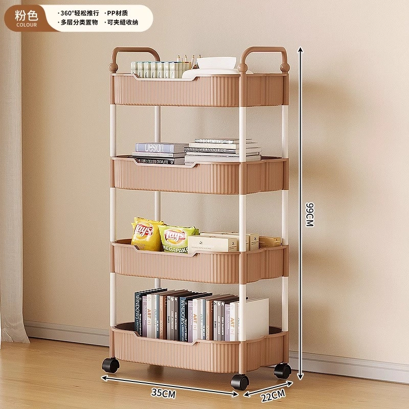 Multi-Layer Floor-Standing Storage Rack for Kitchen Snacks, Mobile Trolley, Bathroom Toilet Storage, Multifunctional Bookshelf