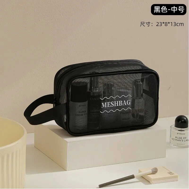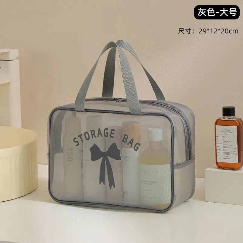 Pillow-Shaped Cosmetic Bag for Business Trips, Drainable Toiletry Bag, Large-Capacity Transparent Mesh Skincare and Makeup Brush Storage Bag