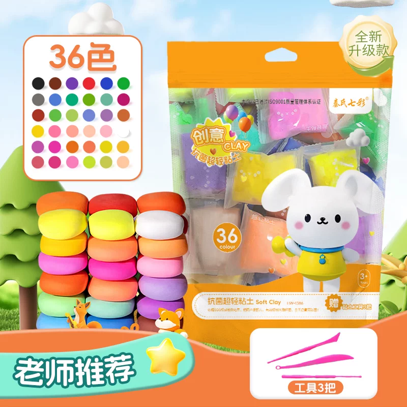 Ultra-Light Clay for Children, Non-Toxic, Odorless, Food-Grade Colored Clay, 36-Piece Special Toy Set, 24-Color Playdough for Kindergarten