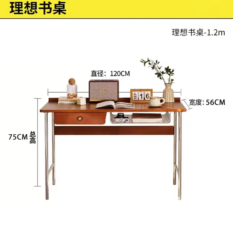 Living Room Desk, Study Room, Italian Minimalist French-Style Reading and Study Table, Light Luxury, High-End Stainless Steel Solid Wood Writing Desk