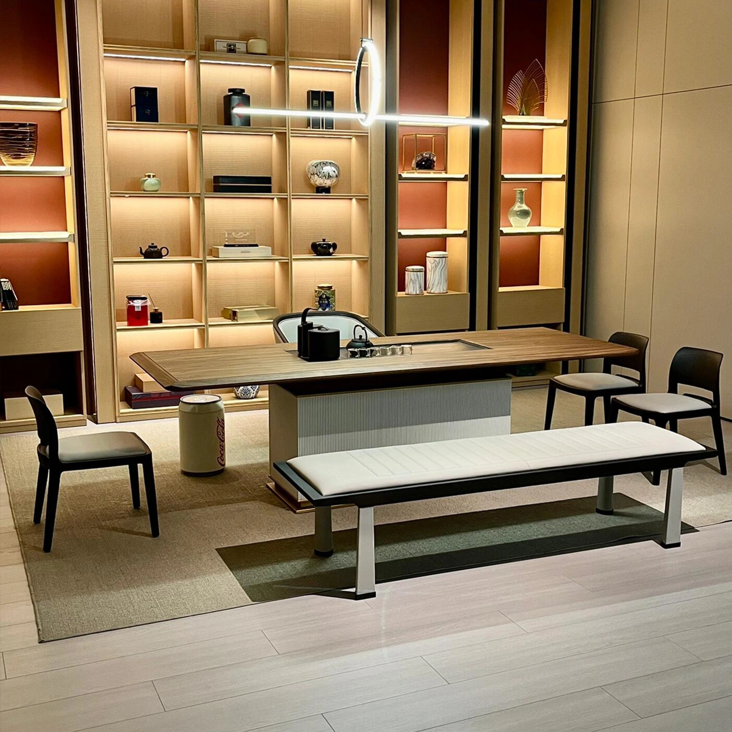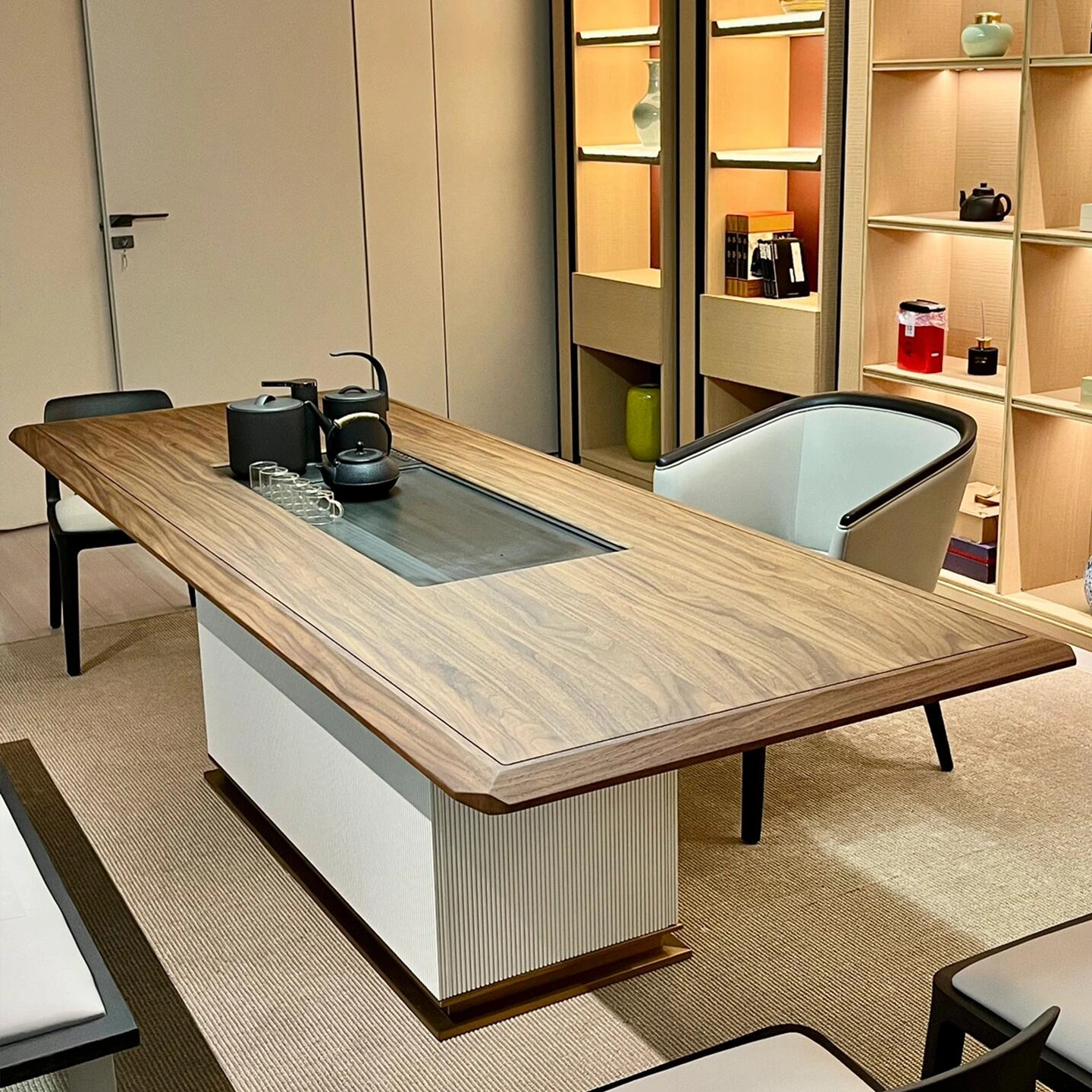 New Chinese-Style Light Luxury Tea Table, Italian-Style Solid Wood Tea Tray Integrated Tea Table and Chairs, Luxury Villa Model Home, Kung Fu Tea
