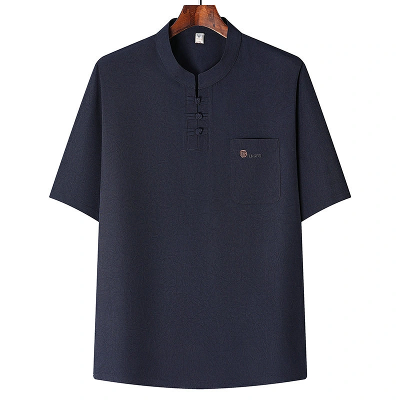Middle-Aged and Elderly Men's Sports Suit, Cotton and Linen Summer Clothing for Dad, Fashionable and Casual Grandpa's Large Size Short-Sleeved T-Shirt Two-Piece Set