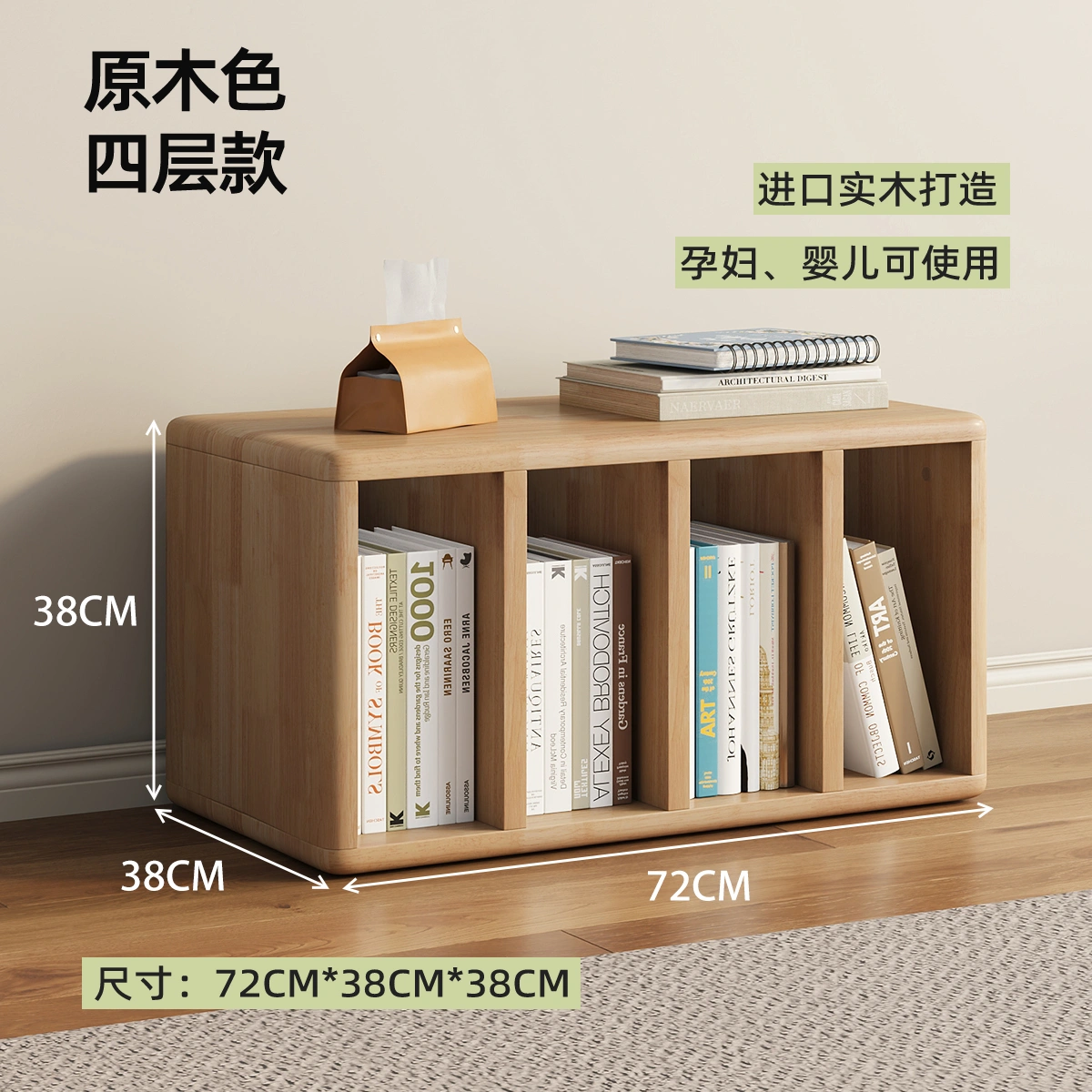 Bookcase and Storage Cabinet Integrated Bookshelf, Wall-Mounted, Movable, Space-Saving, Floor-Standing Solid Wood for Children