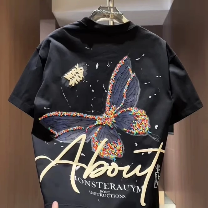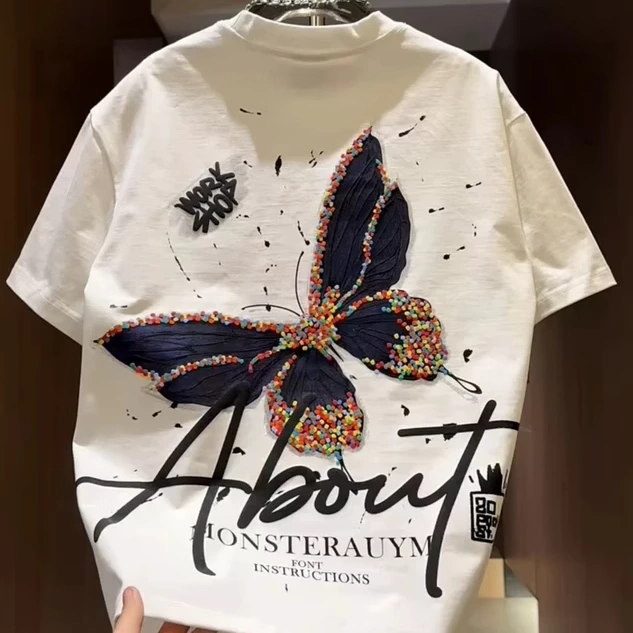 Clearance Sale~ Bargain Vintage Versatile Trendy Loose Butterfly Print Unisex Pure Cotton Short-Sleeve T-Shirt Niche