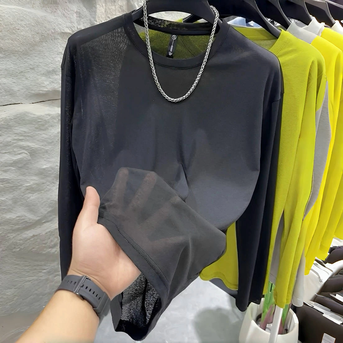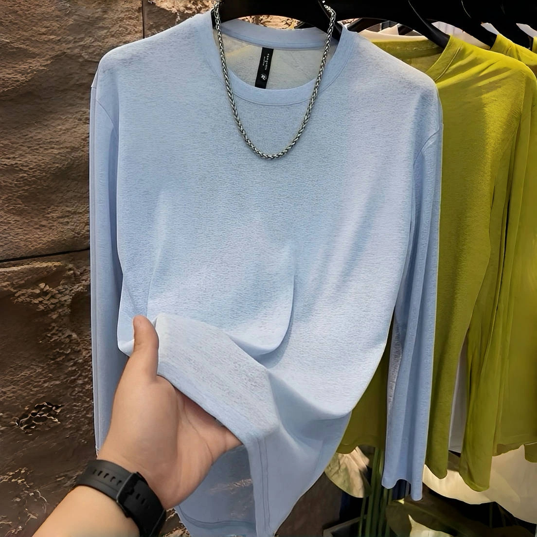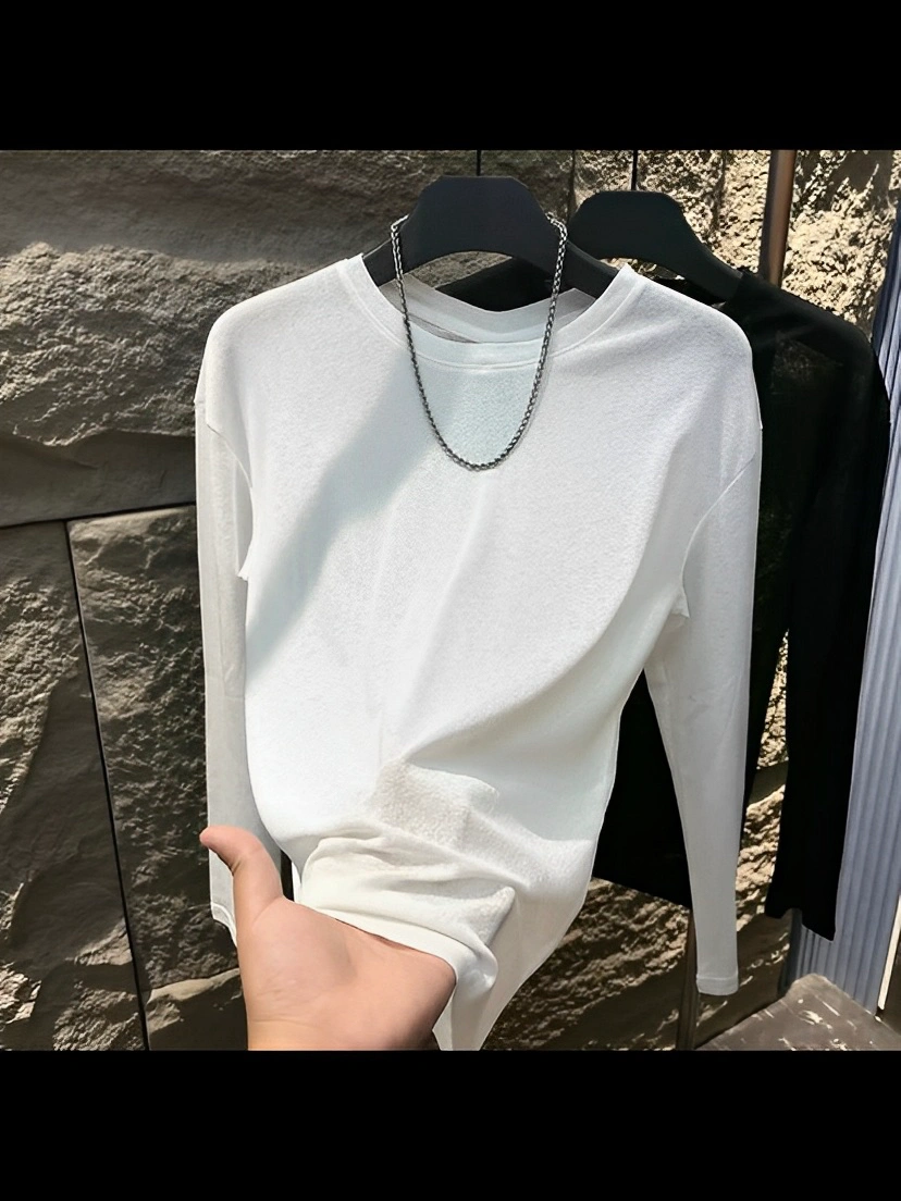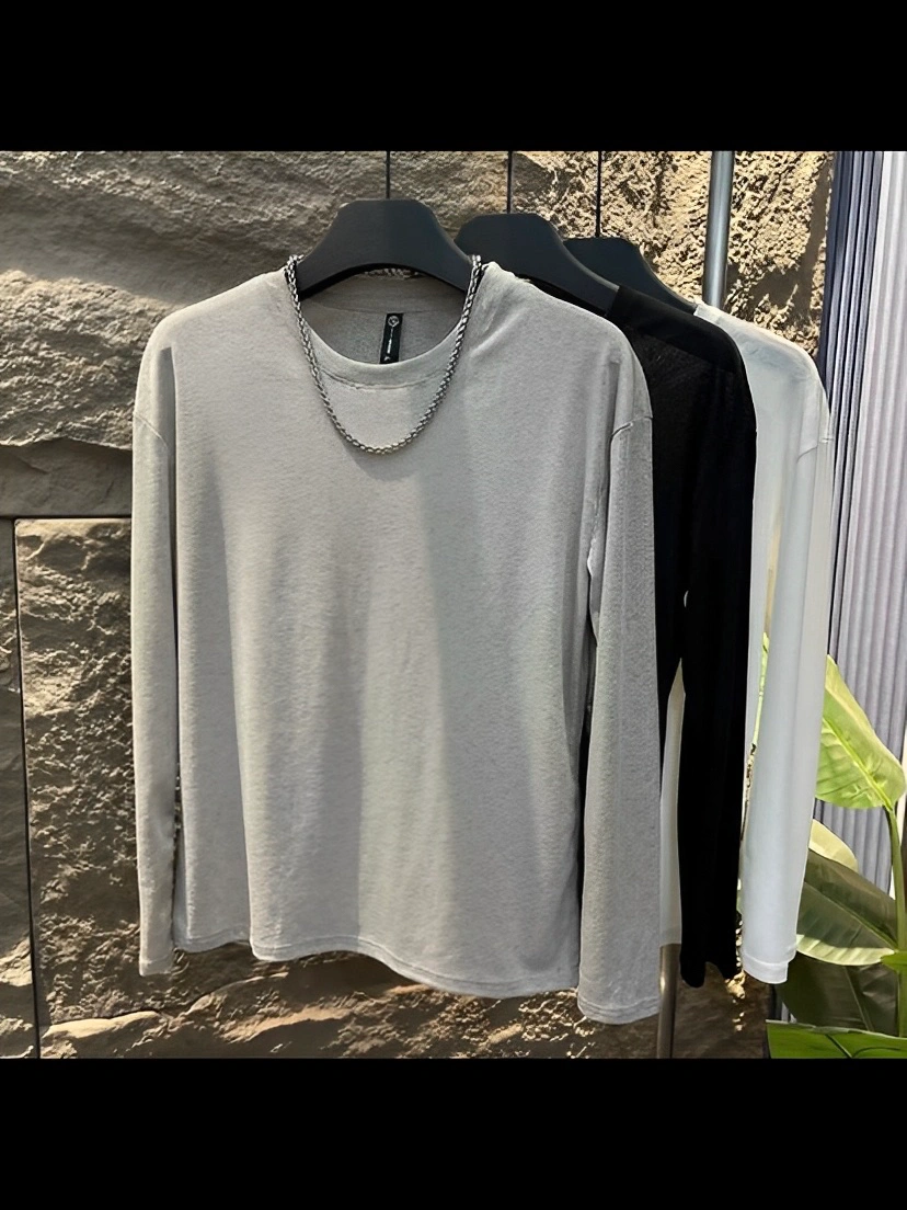 Men's T-Shirt 2025 Autumn New Long-Sleeved Round Neck Sun Protection Base Shirt Fashionable Casual Solid Color Simple Lightweight