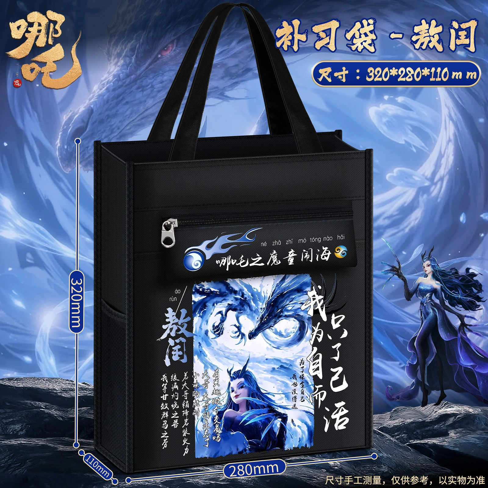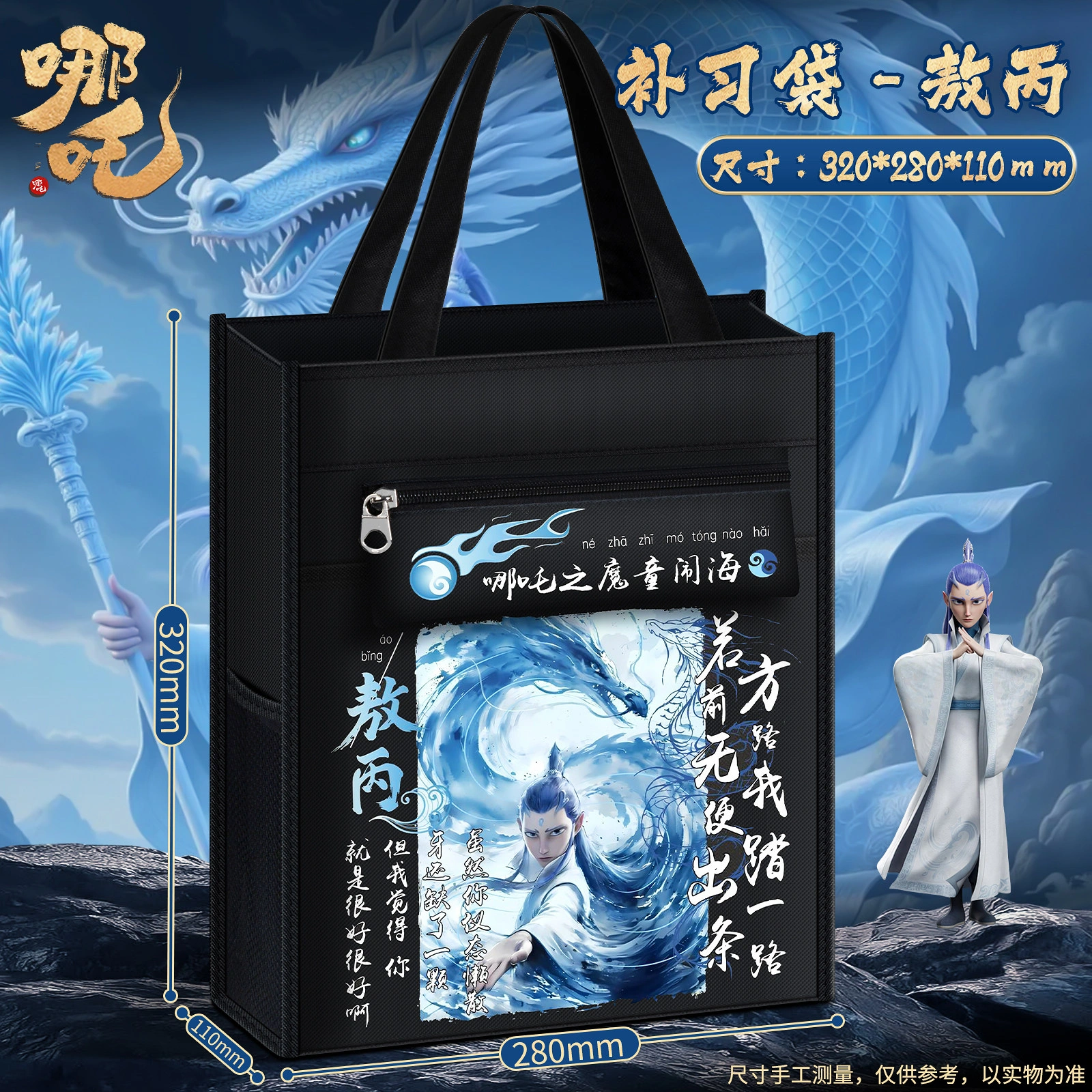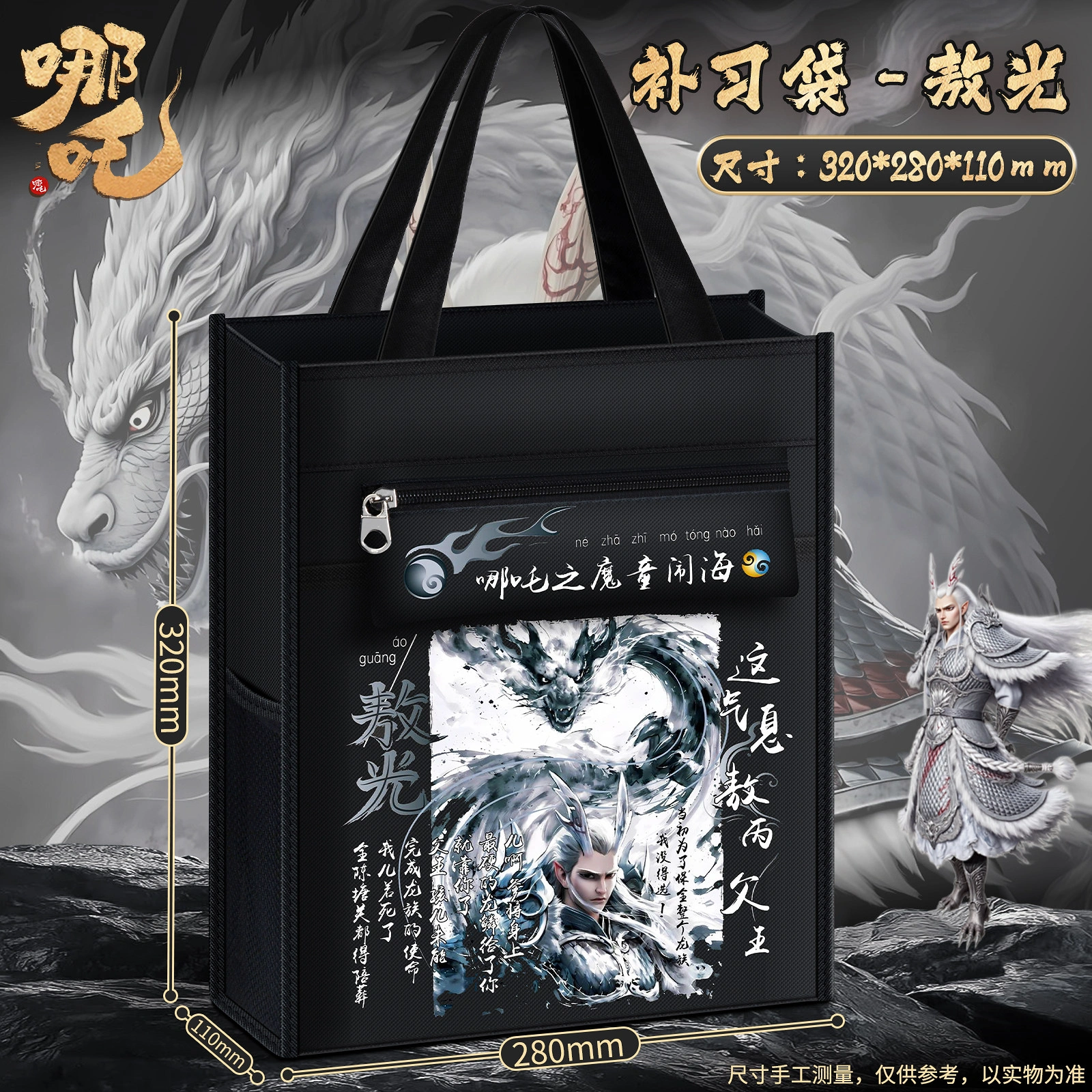 Nezha: the Demon Child Is Born - Tutoring Tote Bag for Elementary School Students, Book Bag for Boys and Girls, Tutoring Bag, Student-Specific Zippered Document Bag, Storage Bag, Homework Bag, Portable Extracurricular Tutoring Class Backpack