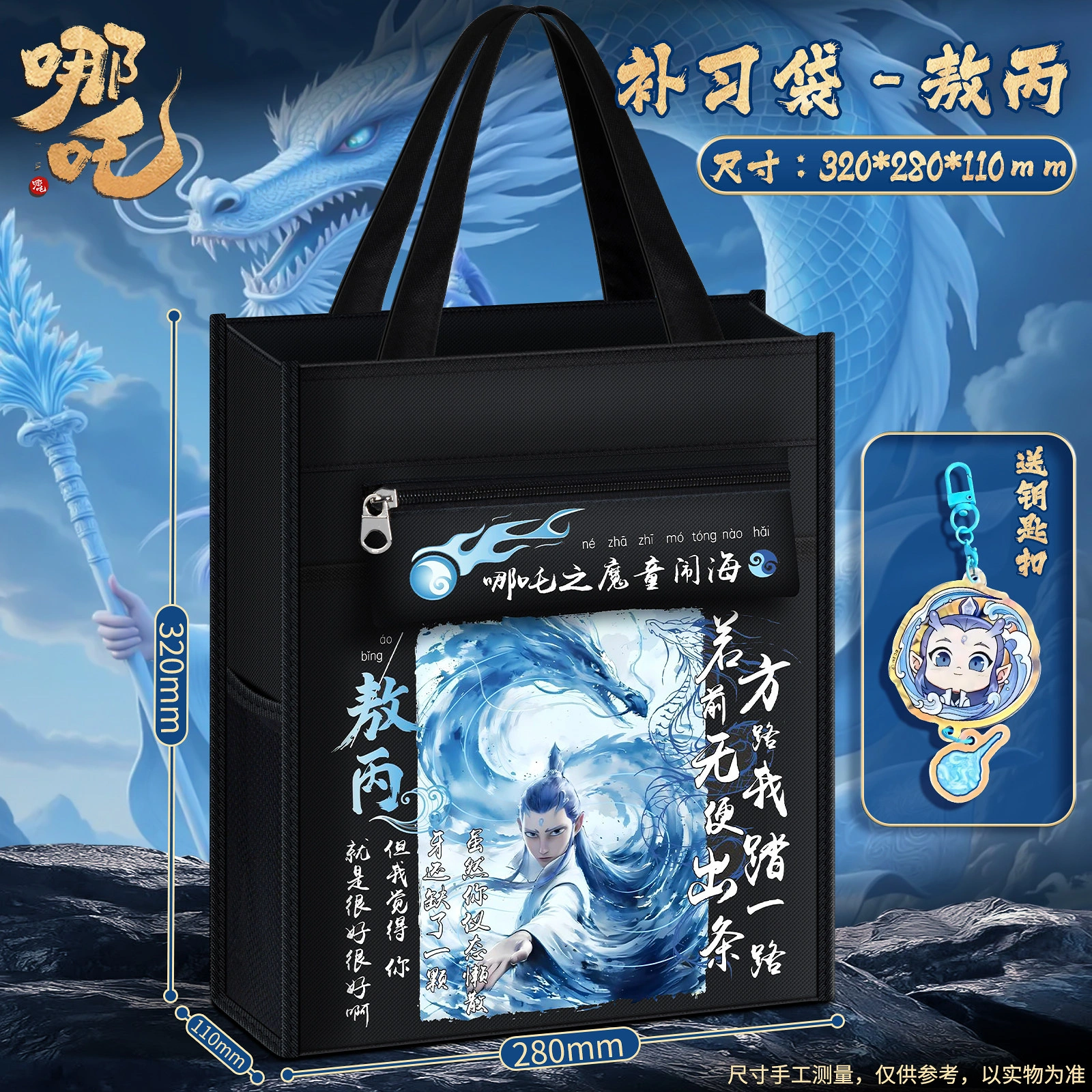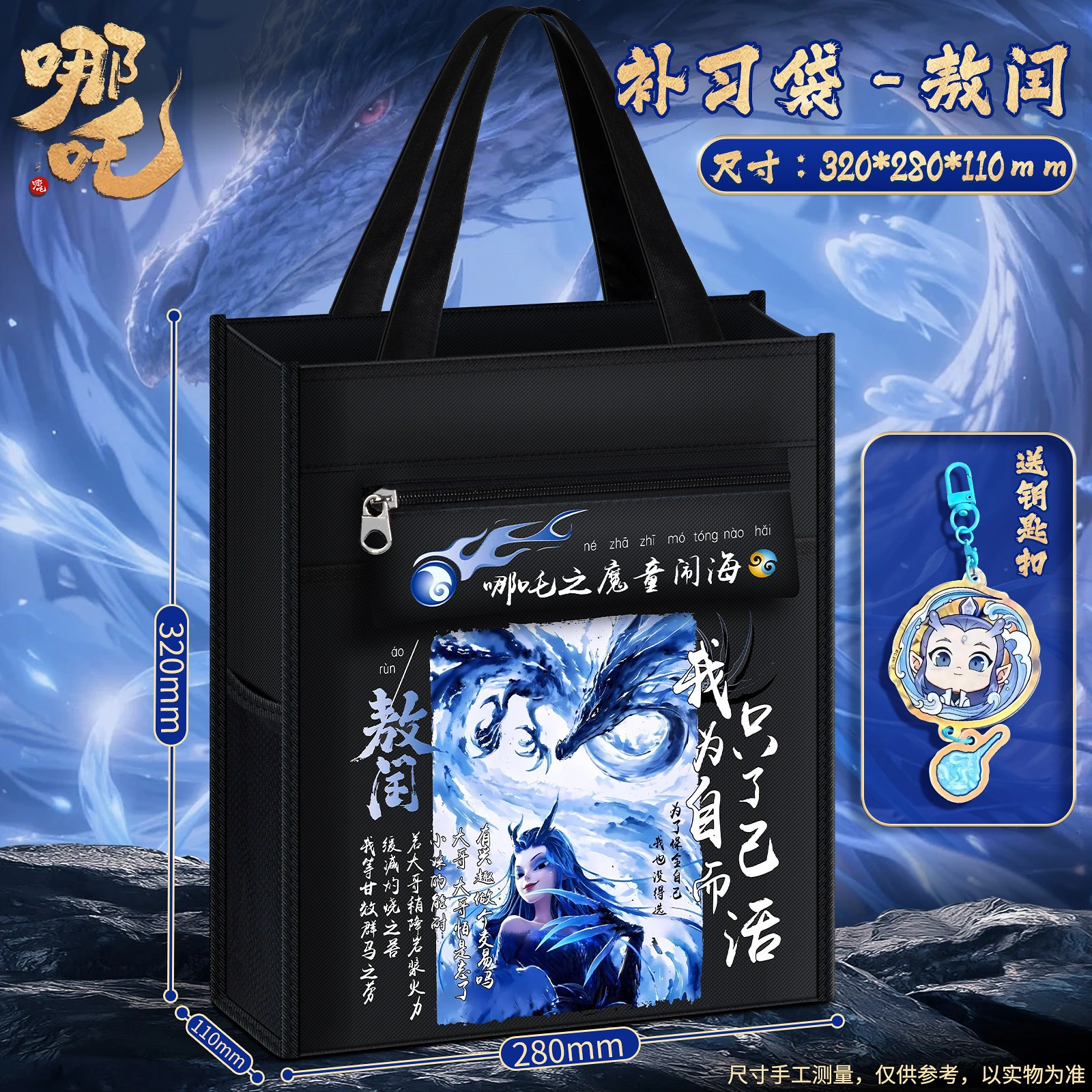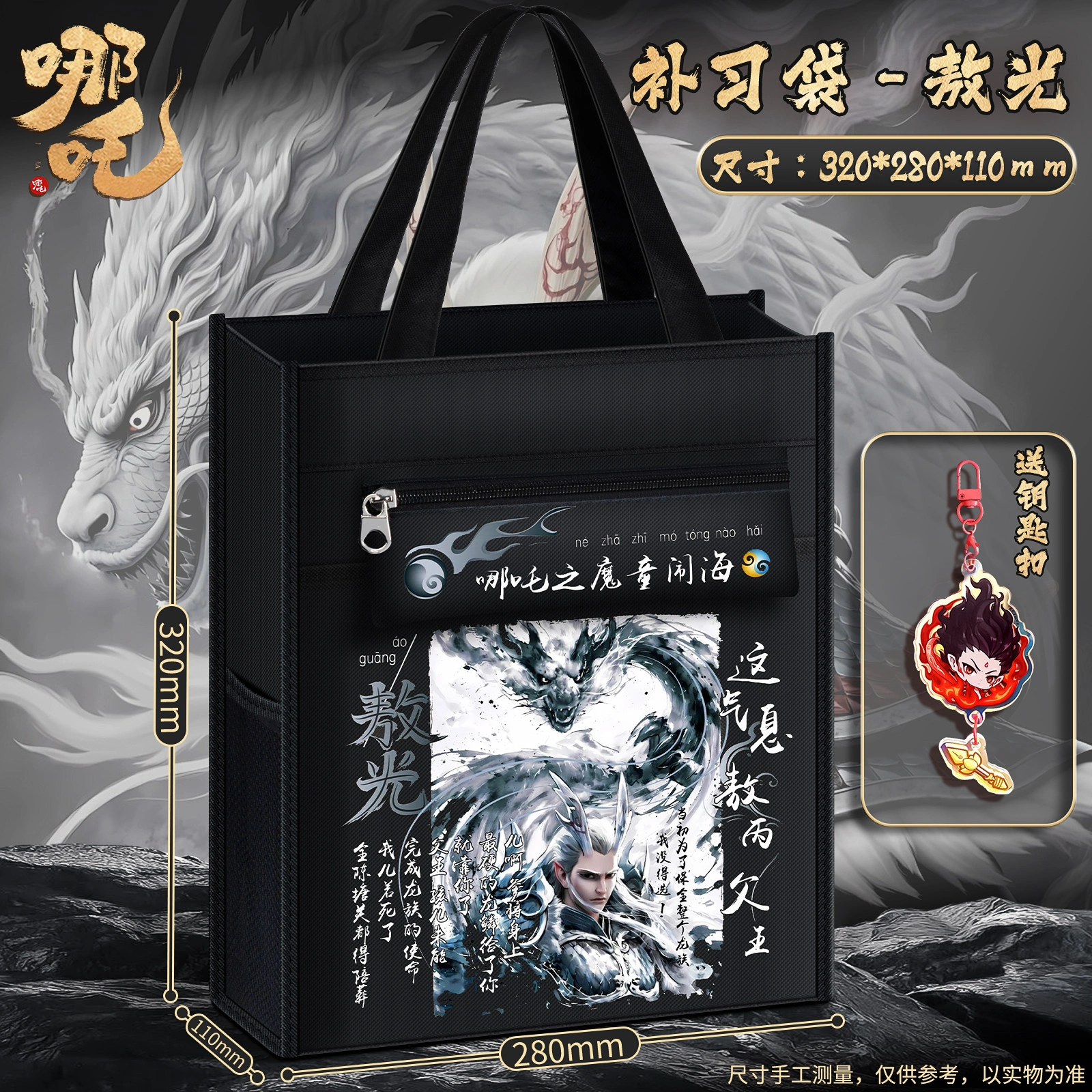 Nezha: the Demon Child Is Born - Tutoring Tote Bag for Elementary School Students, Book Bag for Boys and Girls, Tutoring Bag, Student-Specific Zippered Document Bag, Storage Bag, Homework Bag, Portable Extracurricular Tutoring Class Backpack