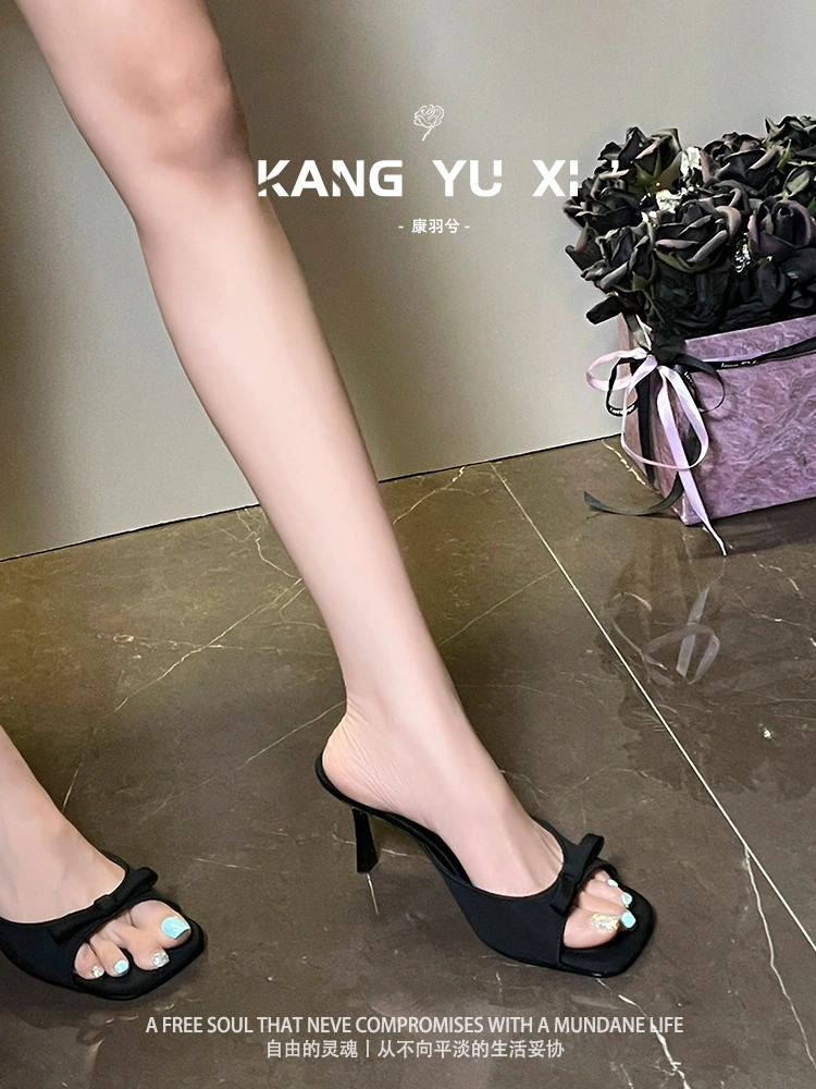 Beautiful Black Elegant High-Heeled Sandals for Women with Thin Heels 2025 Summer New Style Bow-Tie Thin-Heeled Open-Toe Sandals for Outdoor Wear