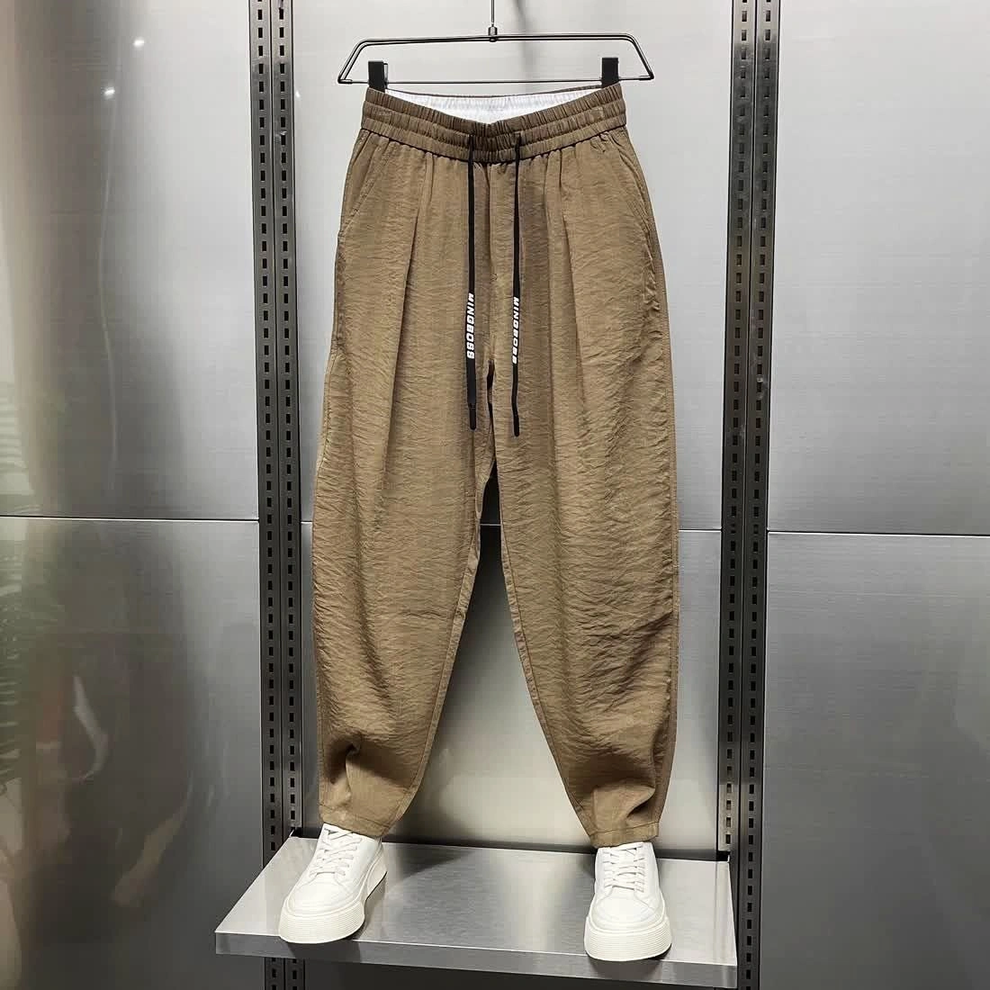 Summer Ice Silk Quick-Drying Men's Thin, Breathable and Drapey, Handsome Loose Air-Conditioned Casual Pants, Handsome, Trendy and Versatile Trousers