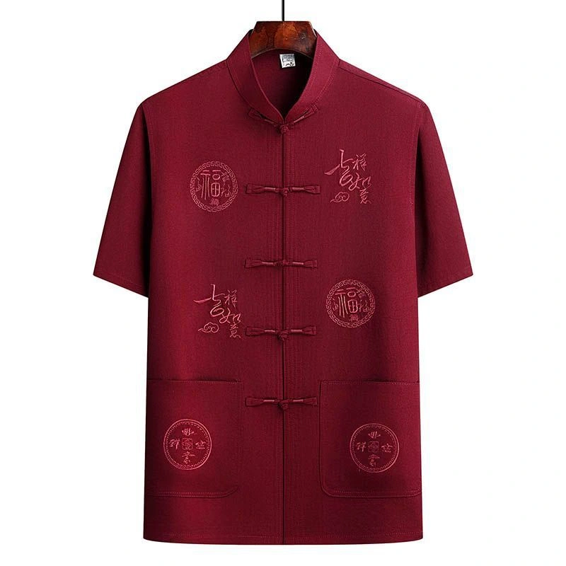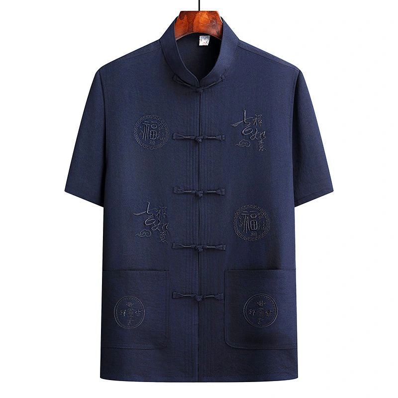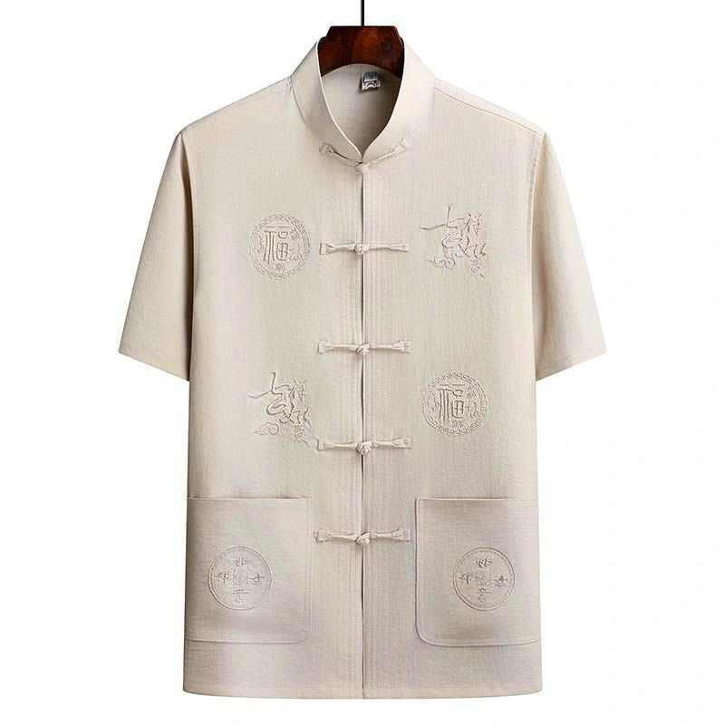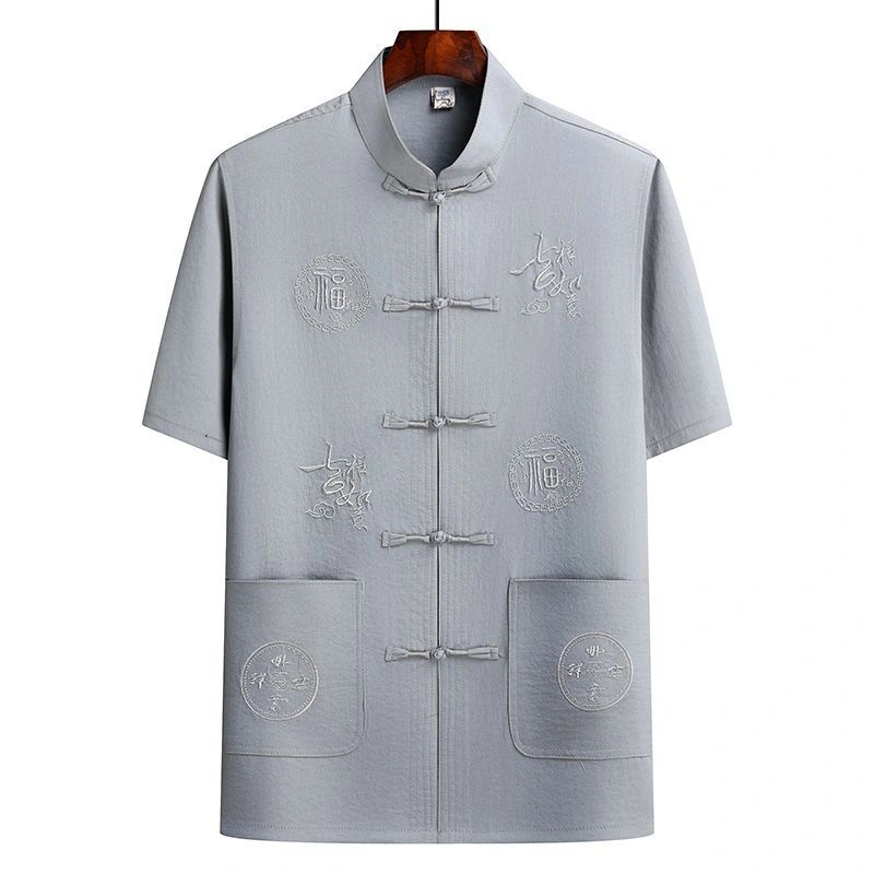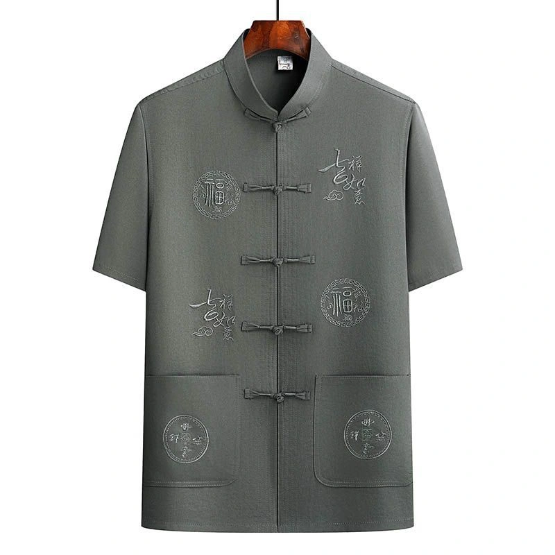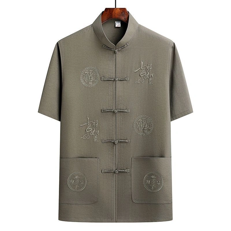 Middle-Aged and Elderly Men's Short-Sleeved Shirts, Summer New Chinese-Style Men's Clothing, Dad's Suit, Two-Piece Shirt Set, Elderly Tang Suit, Grandpa