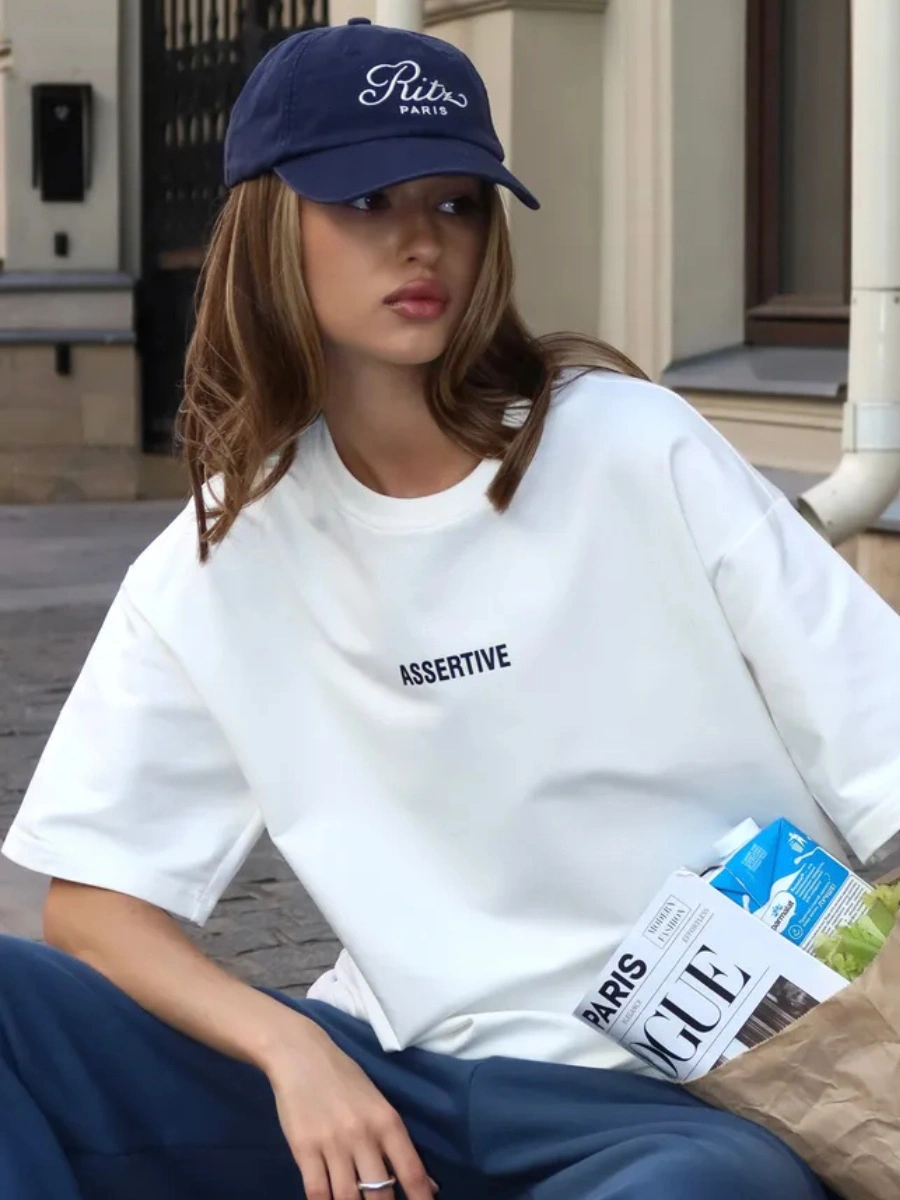 European and American Style Basic Versatile Pure Cotton Loose Casual T-Shirt for Women Cotton Print Loose T-Shirt