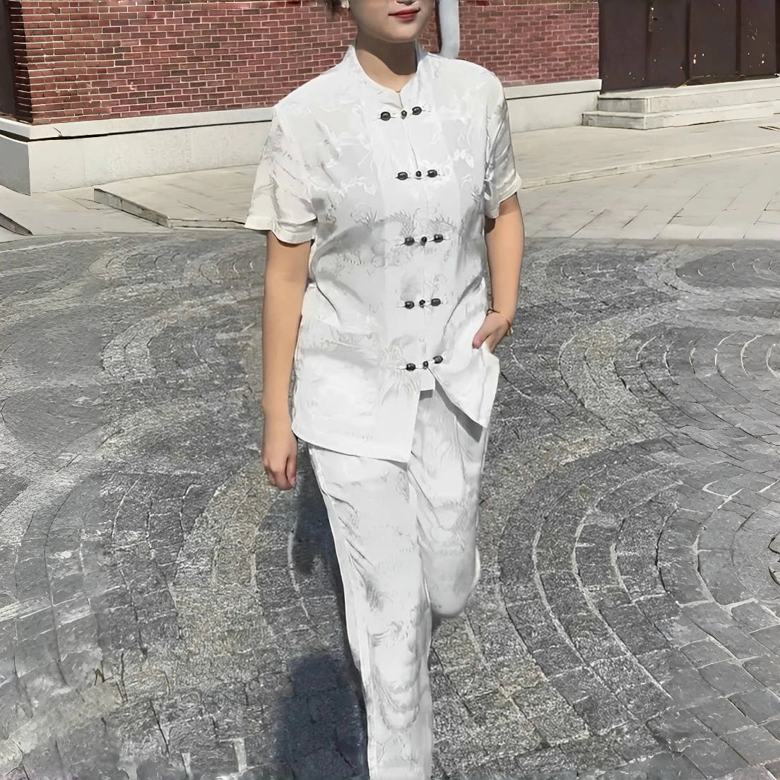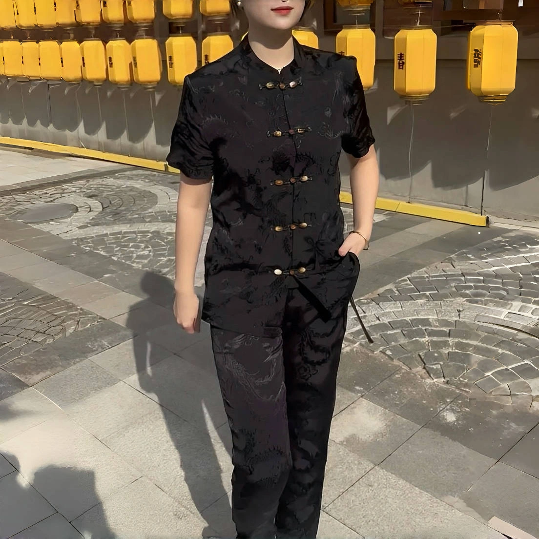 Men's Tang Suit 2025 Summer New Style Retro Casual Comfortable Breathable Solid Color Simple Cool Slim Short-Sleeve Trendy