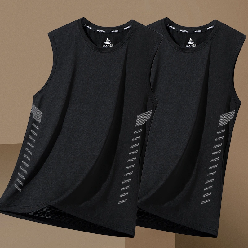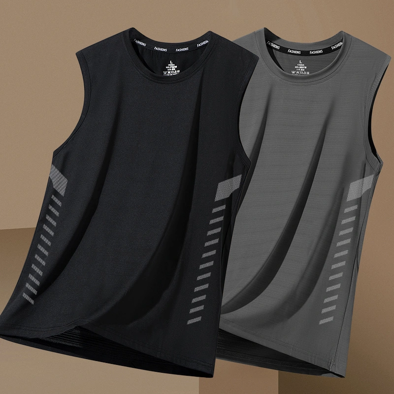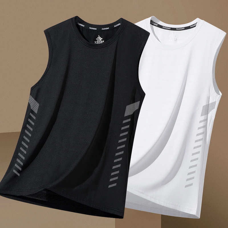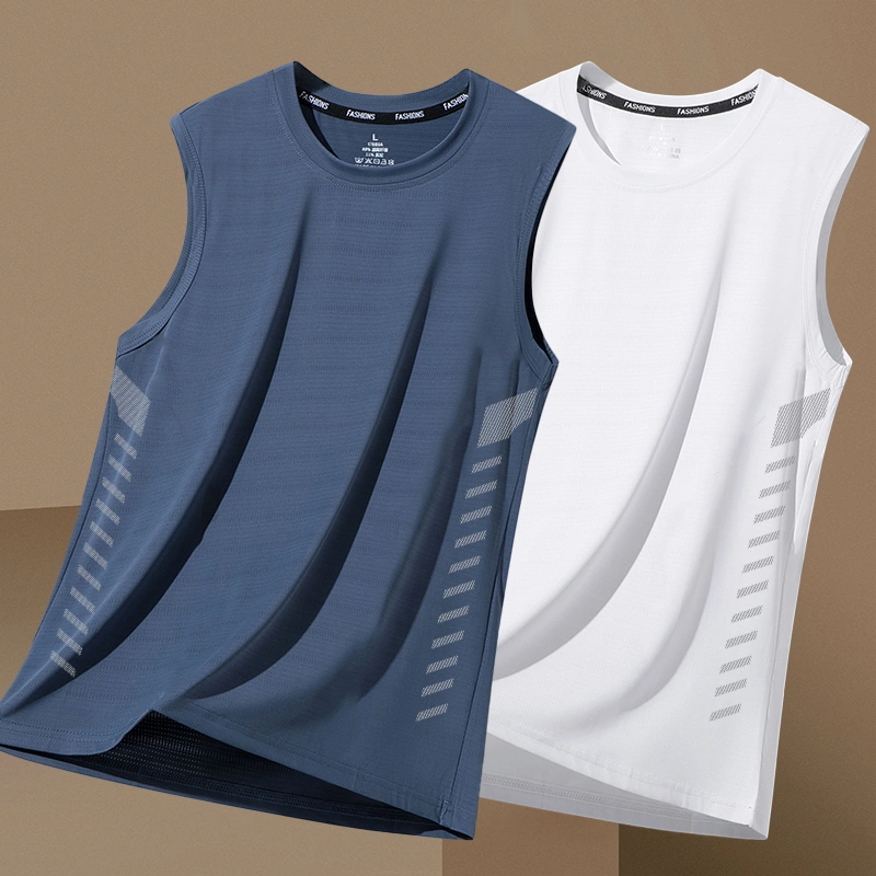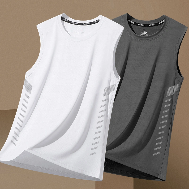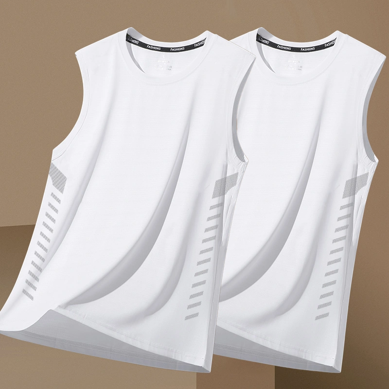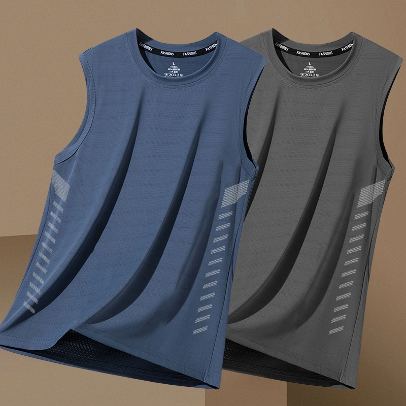 【Fast Shipping】Men's Ice Silk Vest, Trendy Round Neck, Mesh Breathable, Quick-Drying, Sports Wide Vest, Sleeveless Outerwear for Men