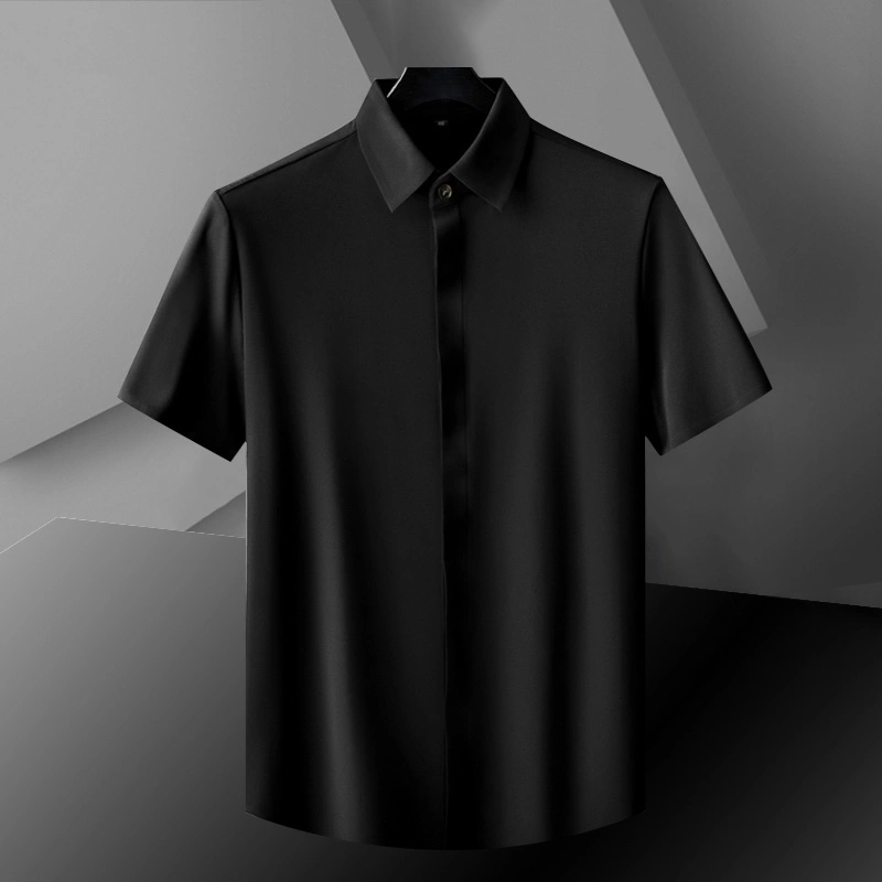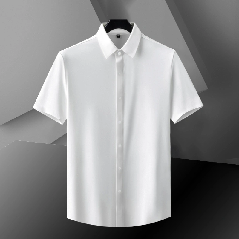 Summer Men's Short-Sleeved White Shirt Men's High-End Elastic Ice Silk Half-Sleeved Shirt Work Professional Inch Spring and Autumn Workwear