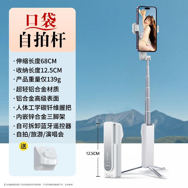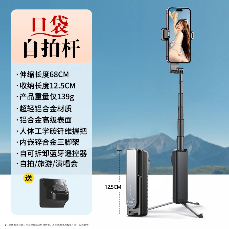 Mobile Phone Selfie Stick 2025 New Model Universal Mini Portable Travel 360-Degree Rotating Shooting Stand Suitable for Apple and Huawei, Pocket-Sized Foldable Self-Portrait Tool