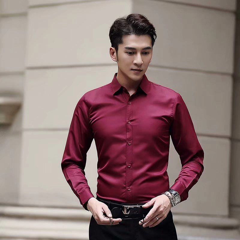 Work White-Collar White-Collar White Shirt Men's Long-Sleeved Business Slim Professional Formal Wear Loose Pure Color Trendy No-Iron Shirt for Men