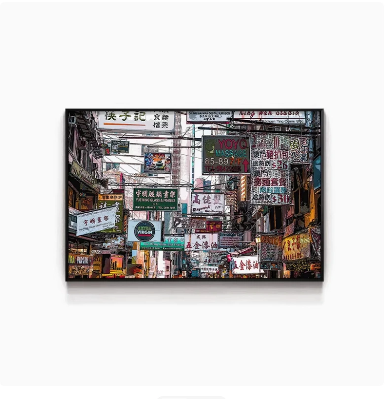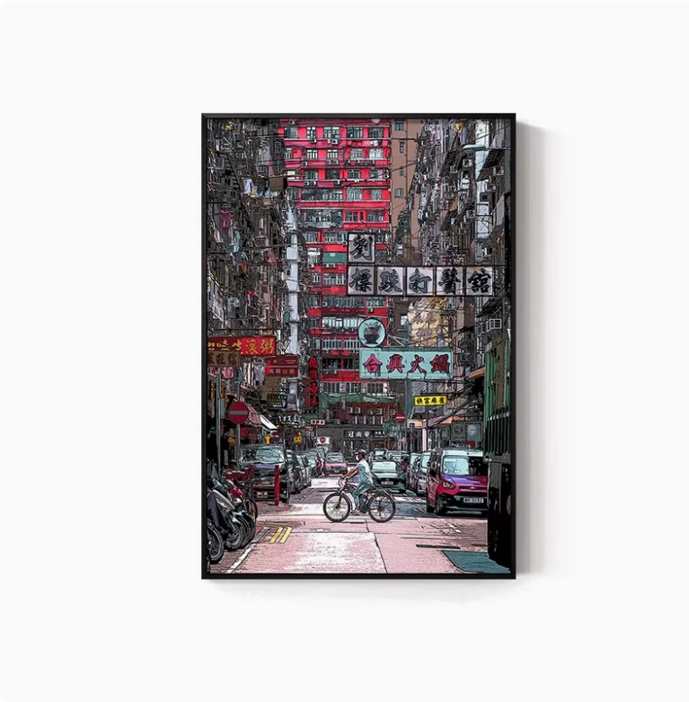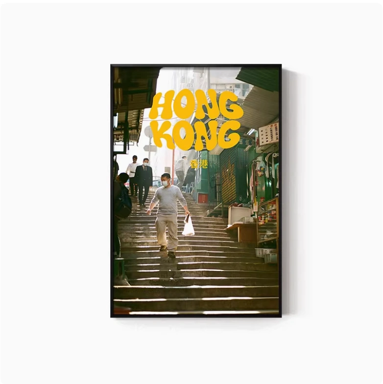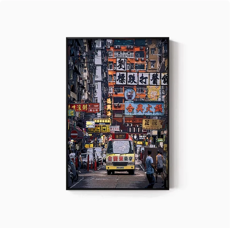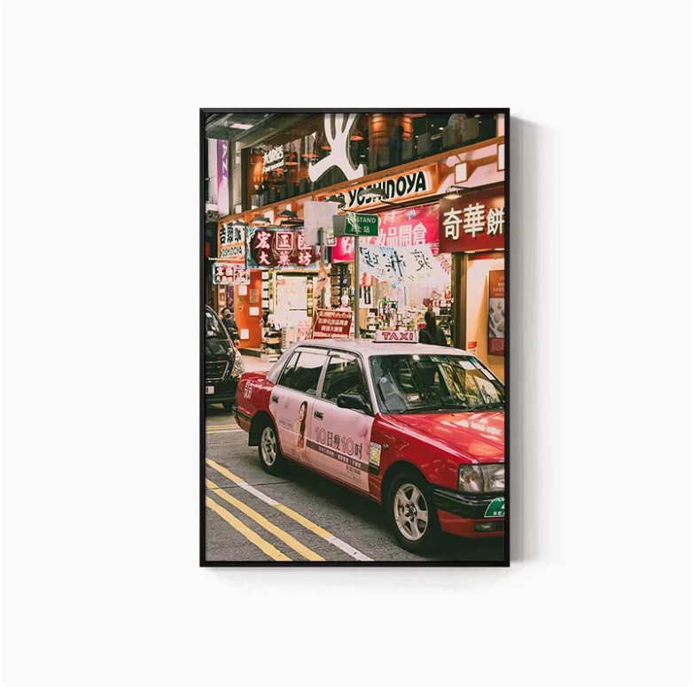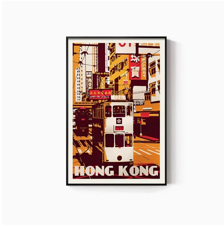 Hong Kong Street Scene Poster, Nostalgic Wall Hanging, Hong Kong-Style Tea Restaurant, Ice Cream Shop Wall Decoration, Tea Stall, Food Stall, Hong Kong-Style Mural