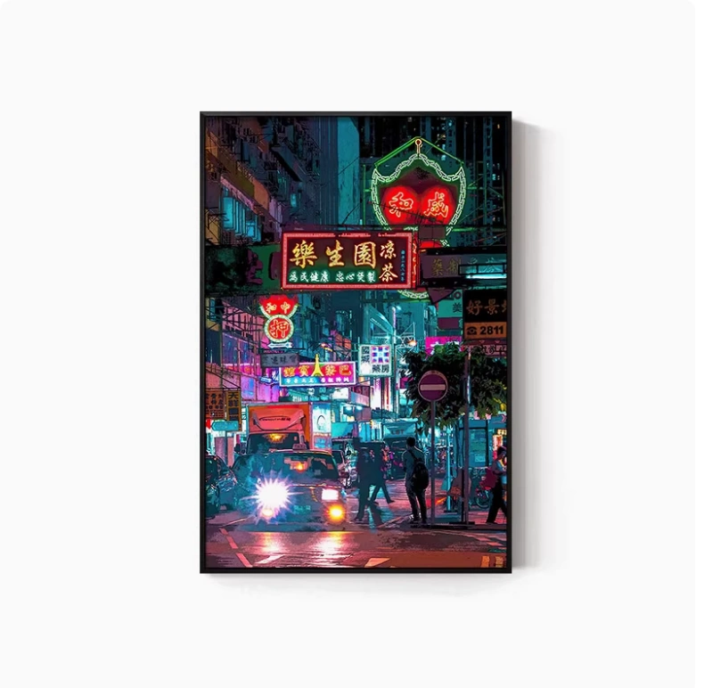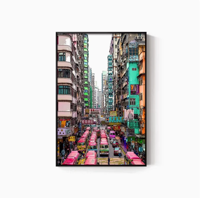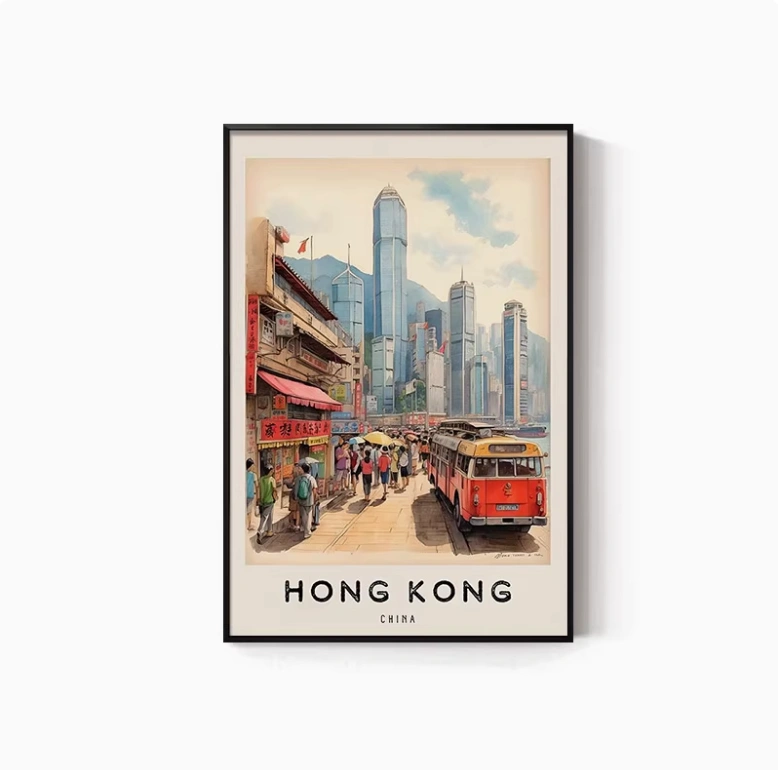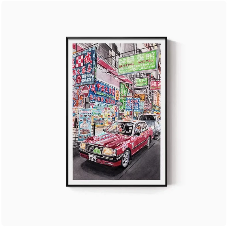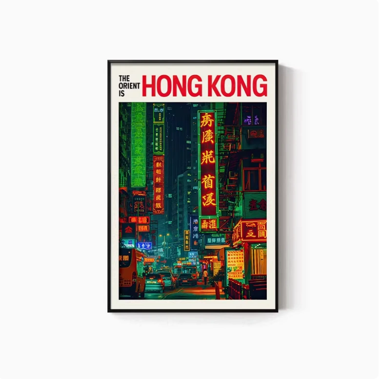 Hong Kong Street Scene Poster, Nostalgic Wall Hanging, Hong Kong-Style Tea Restaurant, Ice Cream Shop Wall Decoration, Tea Stall, Food Stall, Hong Kong-Style Mural