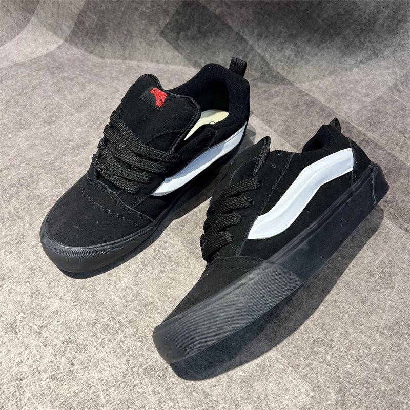 Knu Skool Black Warrior Retro Low-Top Casual Shoes for Men and Women, American Street Style Versatile Chunky Skateboard Shoes