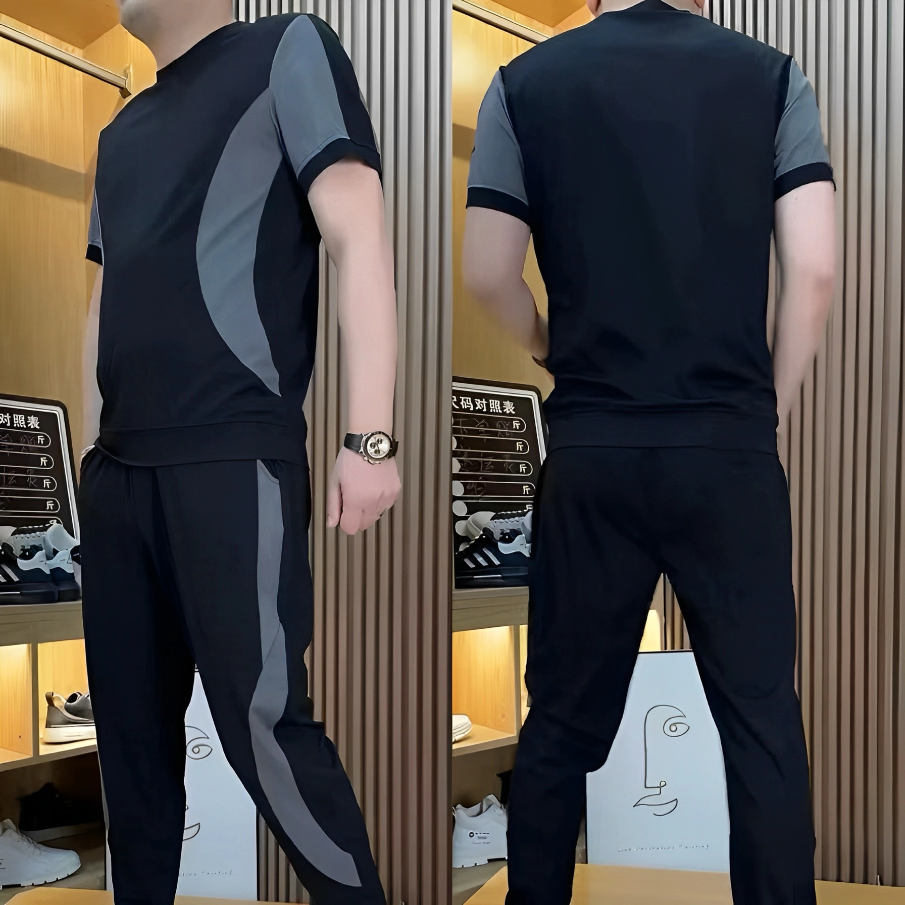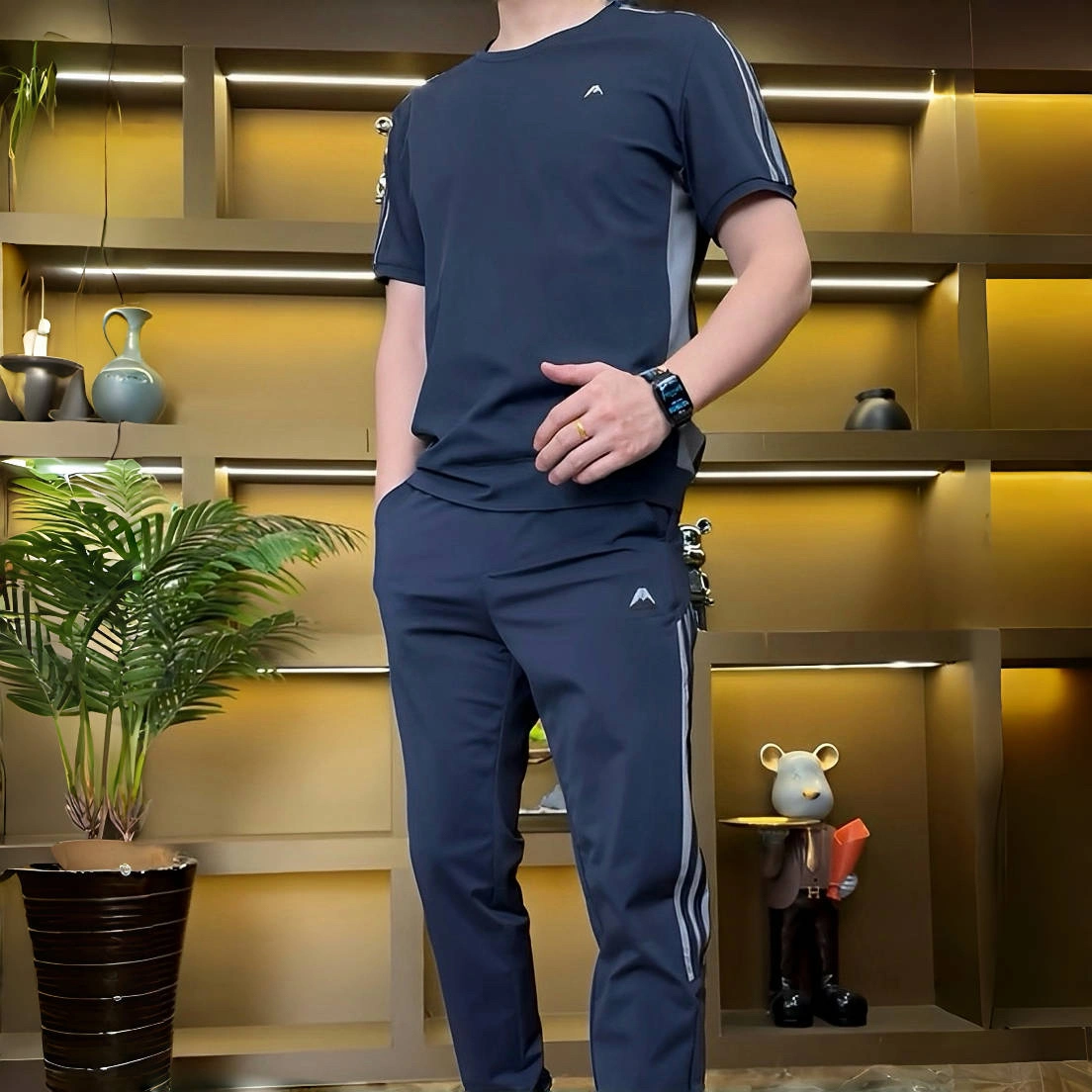Men's Suit 2025 Autumn New Personalized Striped Cool Breathable Trendy Simple Comfortable Ice Silk Two-Piece Set