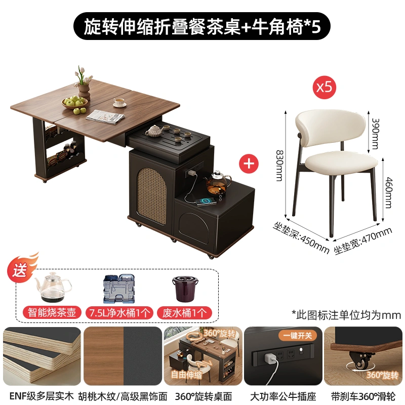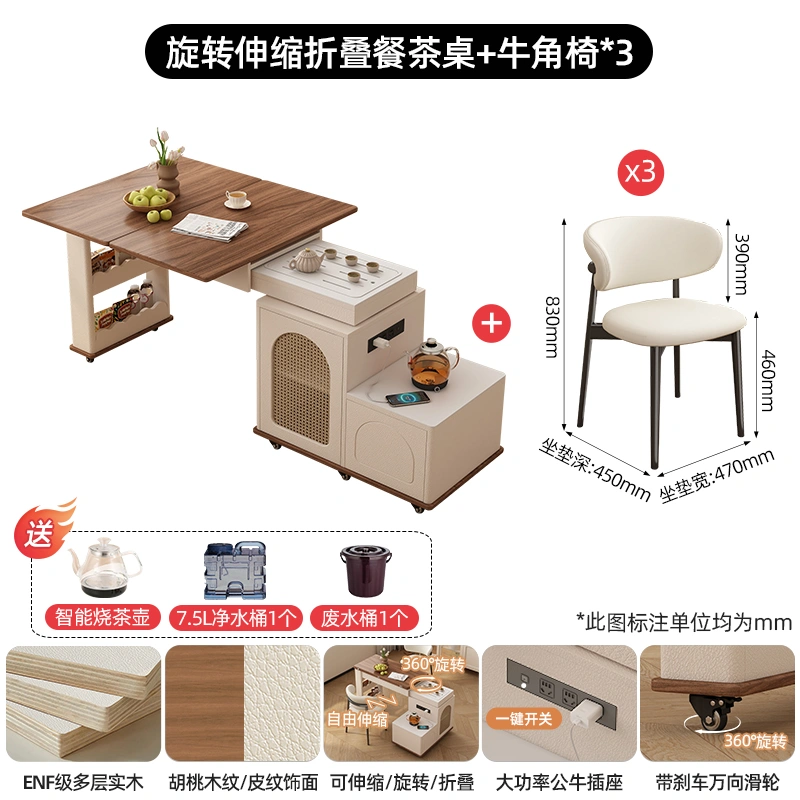 Medieval Style Retractable Water Boiling Cabinet Tea Table Integrated Home Living Room Multi-Functional Mobile Coffee Table with Wheels Tea Bar Cabinet