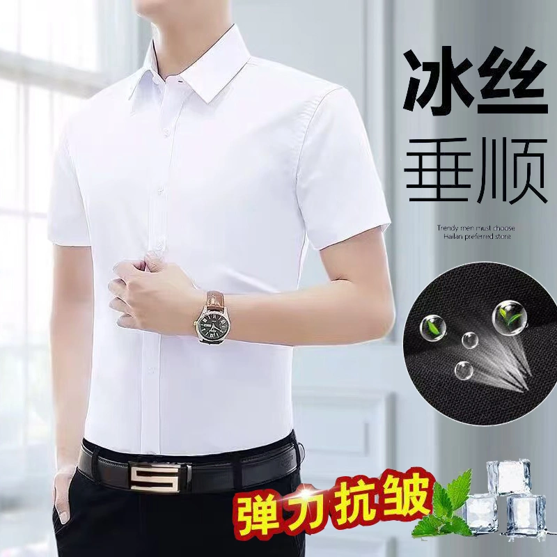 Micro-Elastic Shirt Men's Short-Sleeved Summer Ice Silk Thin Business Formal Half-Sleeved Casual Shirt No-Iron Professional Workwear