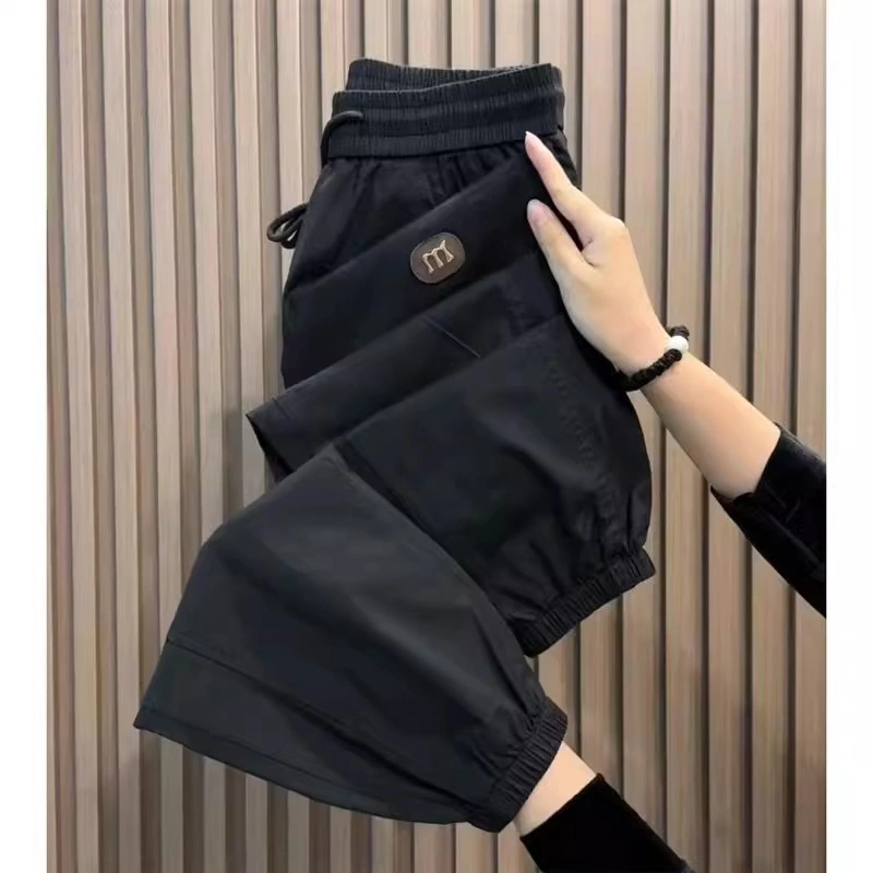 Thin Summer Ice Silk Harem Pants for Work Overalls, Handsome and Loose Nine-Point Casual Pants for Men